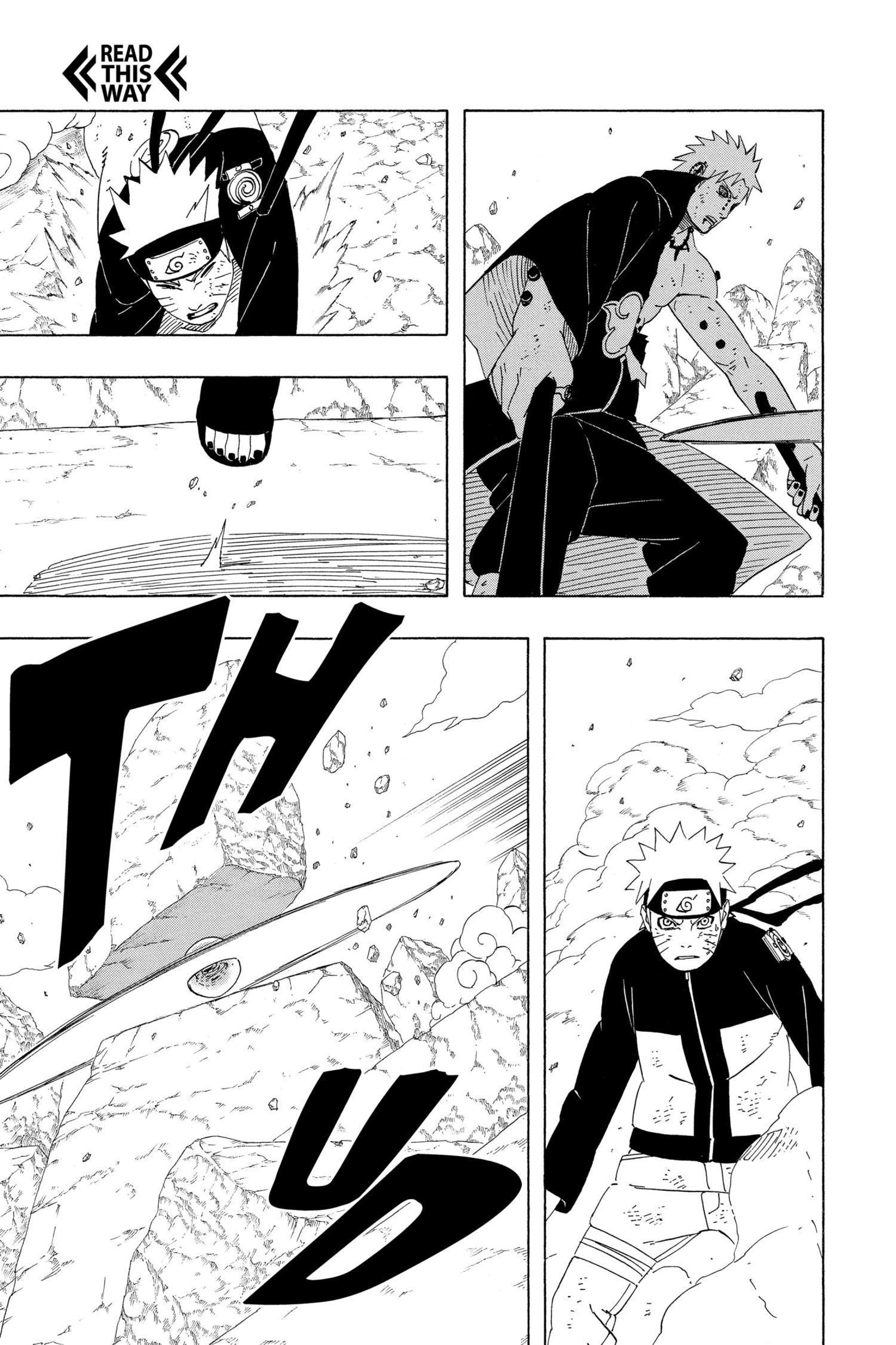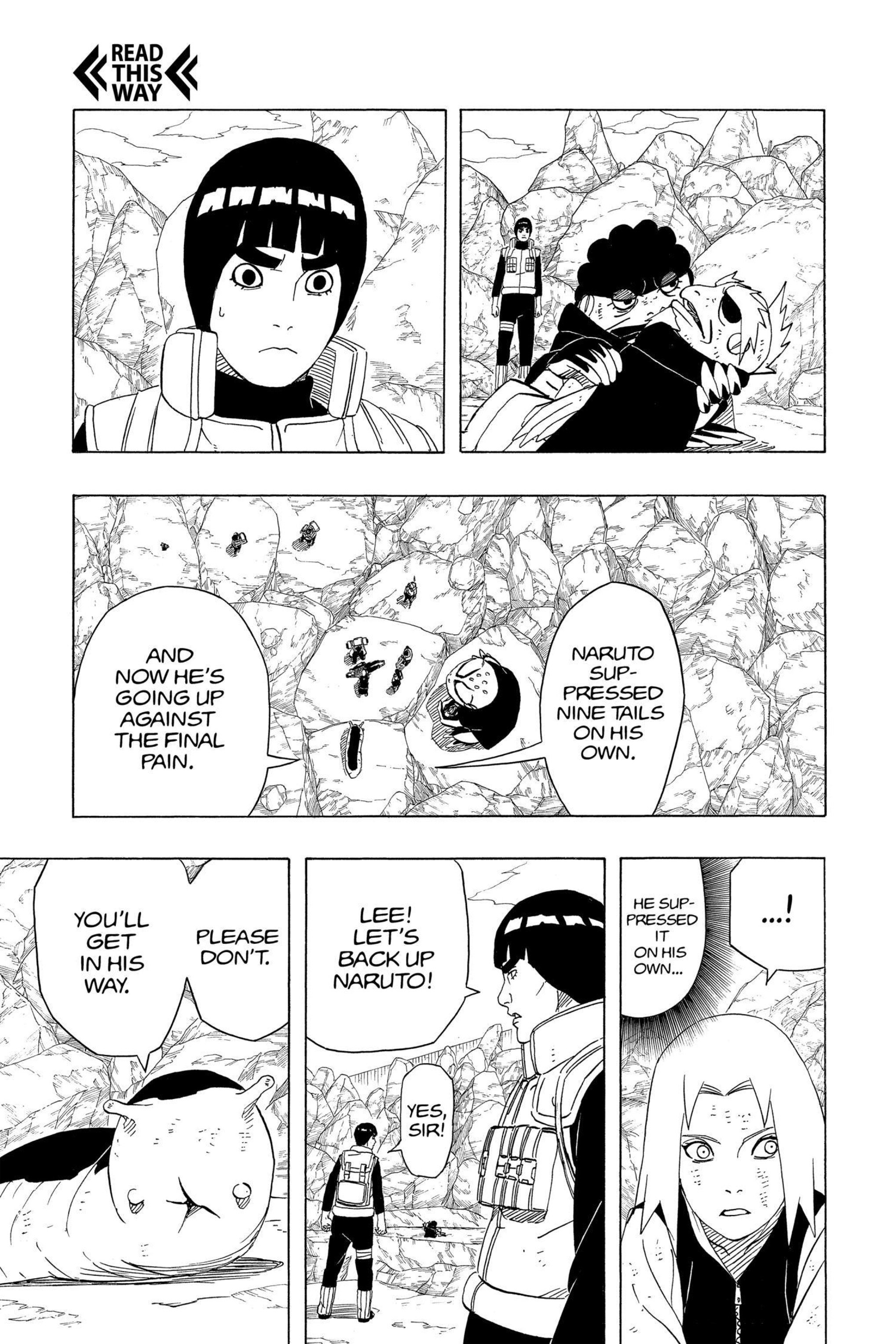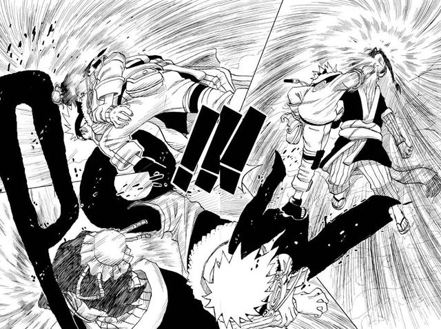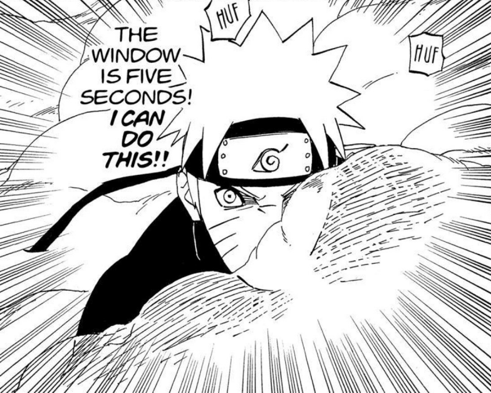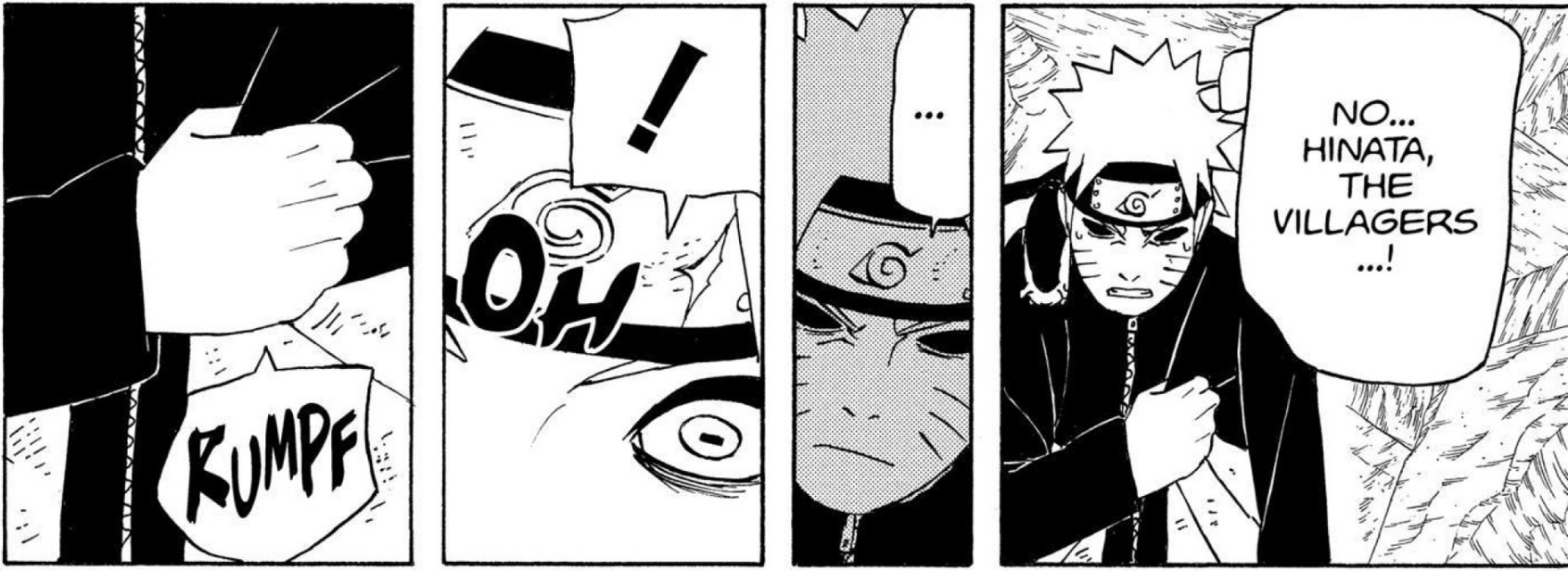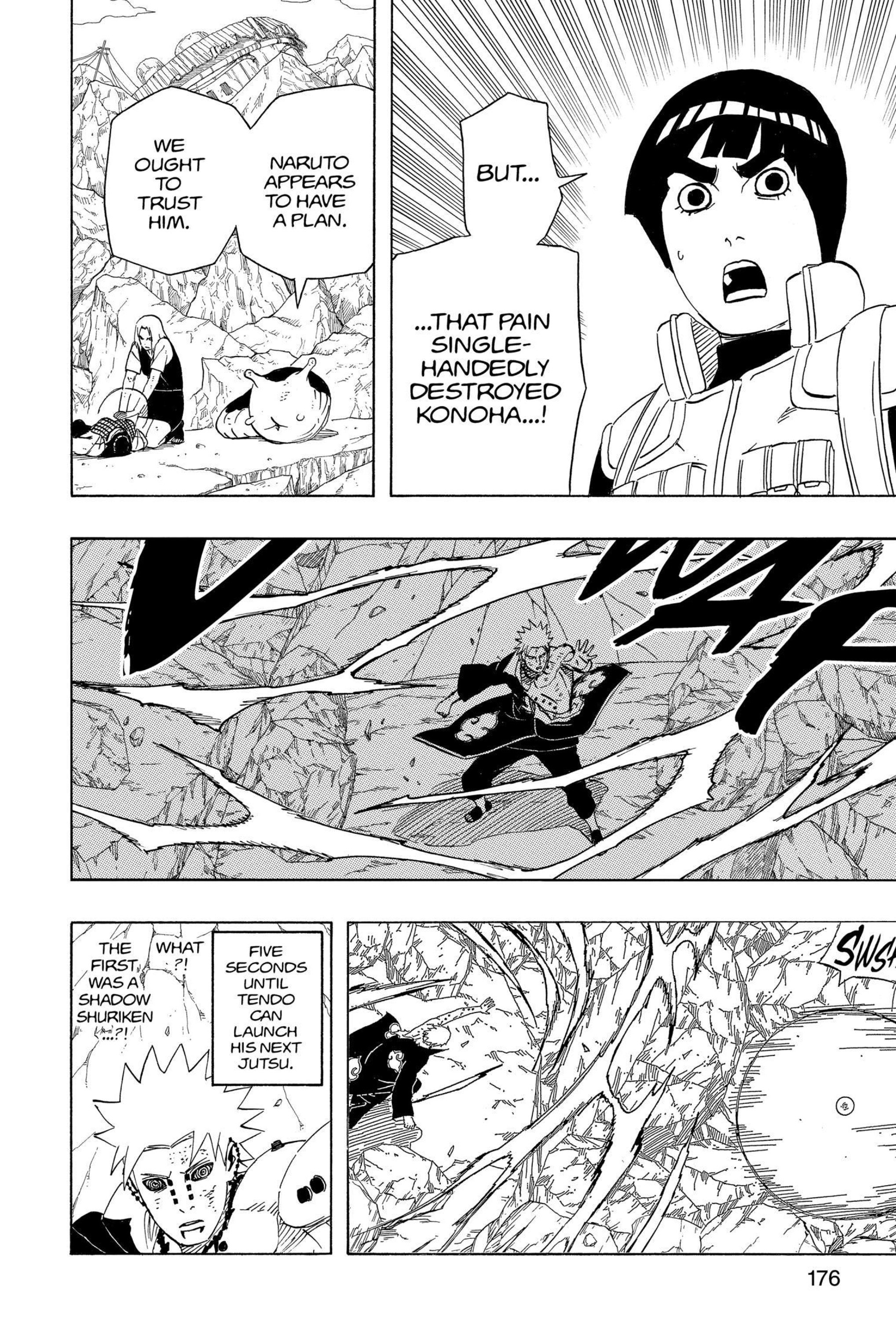 >>286687515> you'll get in his wayLMFAO. Can't even say this was due to a lack of planning, we have known about the 8 gates since the chunin exam. I'm not confident the six paths could have taken Guy with 7 gates.Also, Lee lookin at those frogs like "who are these guys" kek>>286687566>>286687582hard to tell what's happening here. No, I don't need anyone to explain it.>>286687629>>286687655This is dumb and impossible for Pain not to notice, but I think it's funny how it's the exact same bullshit Kakashi pulled so I'm letting it pass.>>286687705This however is the bad kind of dumb and does not get a pass. Tendo blew the giant frogs halfway across the country, no way you can resist the push like this.>>286687724Someone else said the bottom panel should have been Konoha ninja holding him up instead of clones, and I wholeheartedly agree. That would be actual theming, and it would make Tsunade keeping everyone alive purposeful.>>286687749What a terrible way to end the fight. Konohamaru could have dodged this. Just another specific scene Kishi wanted to draw, with no natural progression.
