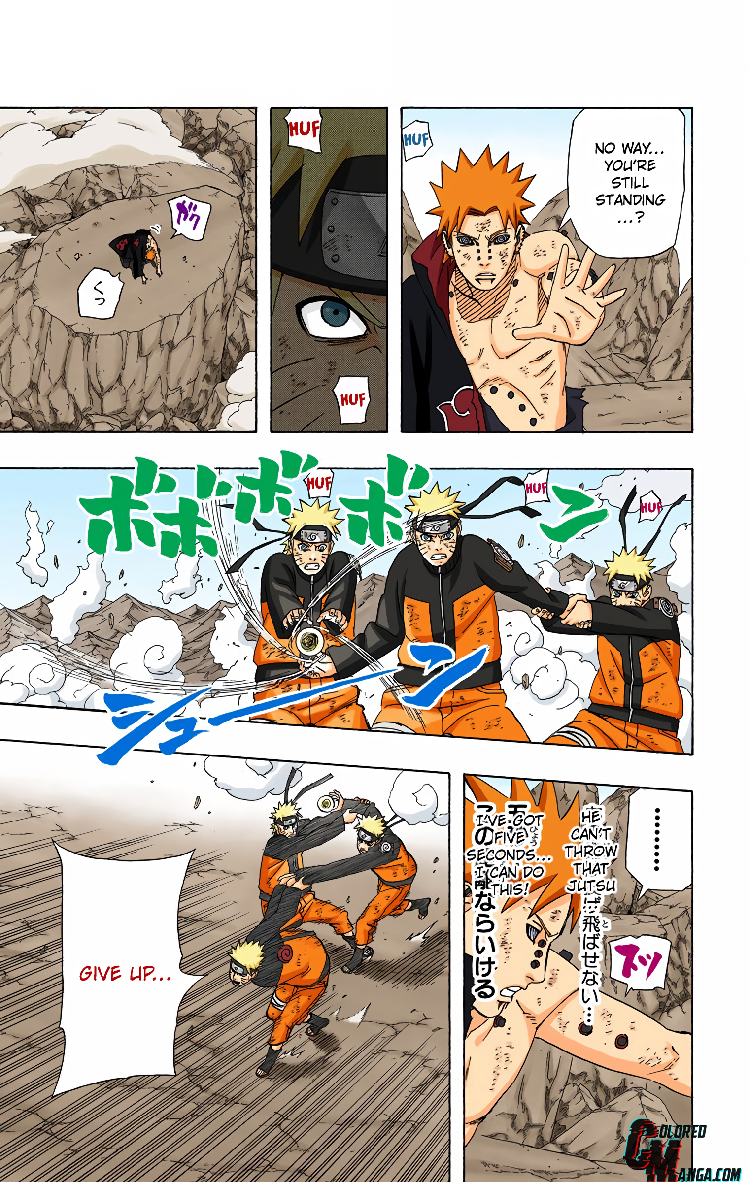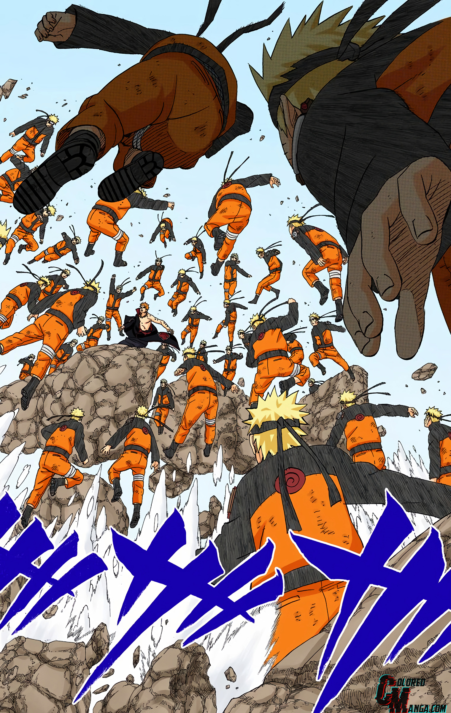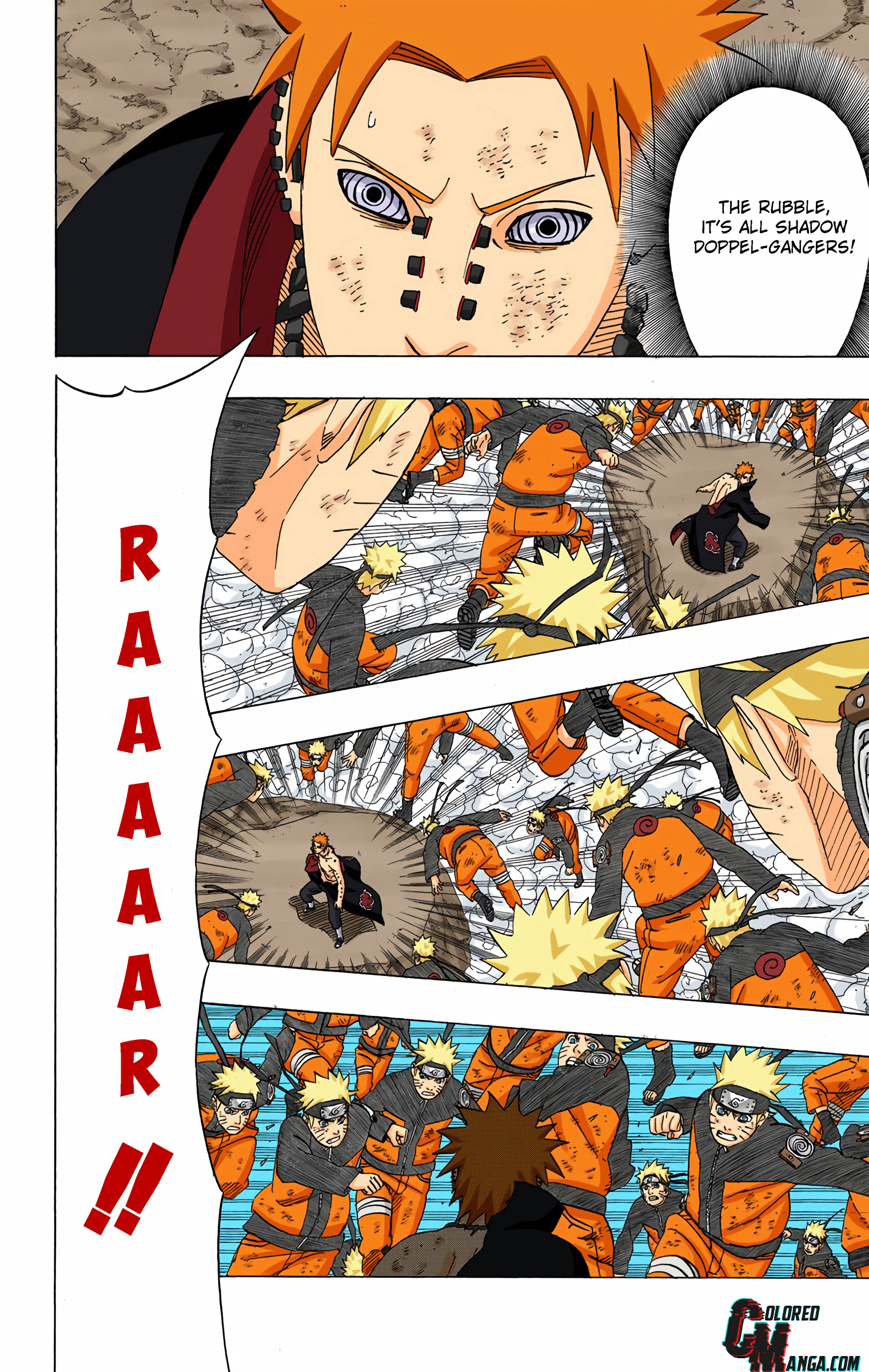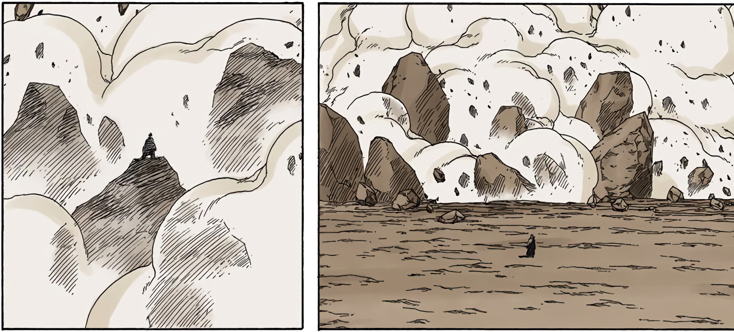 >>286690681>>286690661"............" is implying he's deep in thought. The next two panels focus heavily on the smoke and Naruto standing in it alongside the falling rocks and debris. This is further confirmed by this panel that is showing Naruto standing in the smoke, meaning Pain is explicitly telling the reader this is when Naruto made his clones.