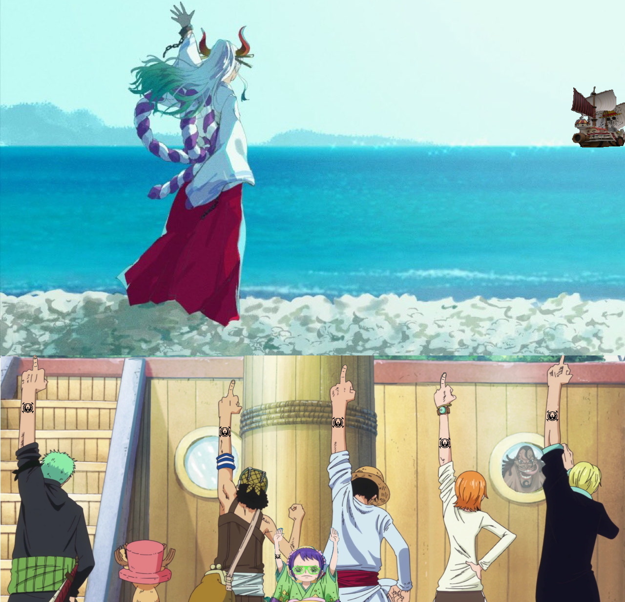 >>286690186>Post scenarios you want to happen before Elbaf is over.My waifu arriving on Elbaf with the rest of Linlin's kids on the Queen Mother Chanter, just in time for their family's flagship to get sank by another returning character. Pick whoever you want.