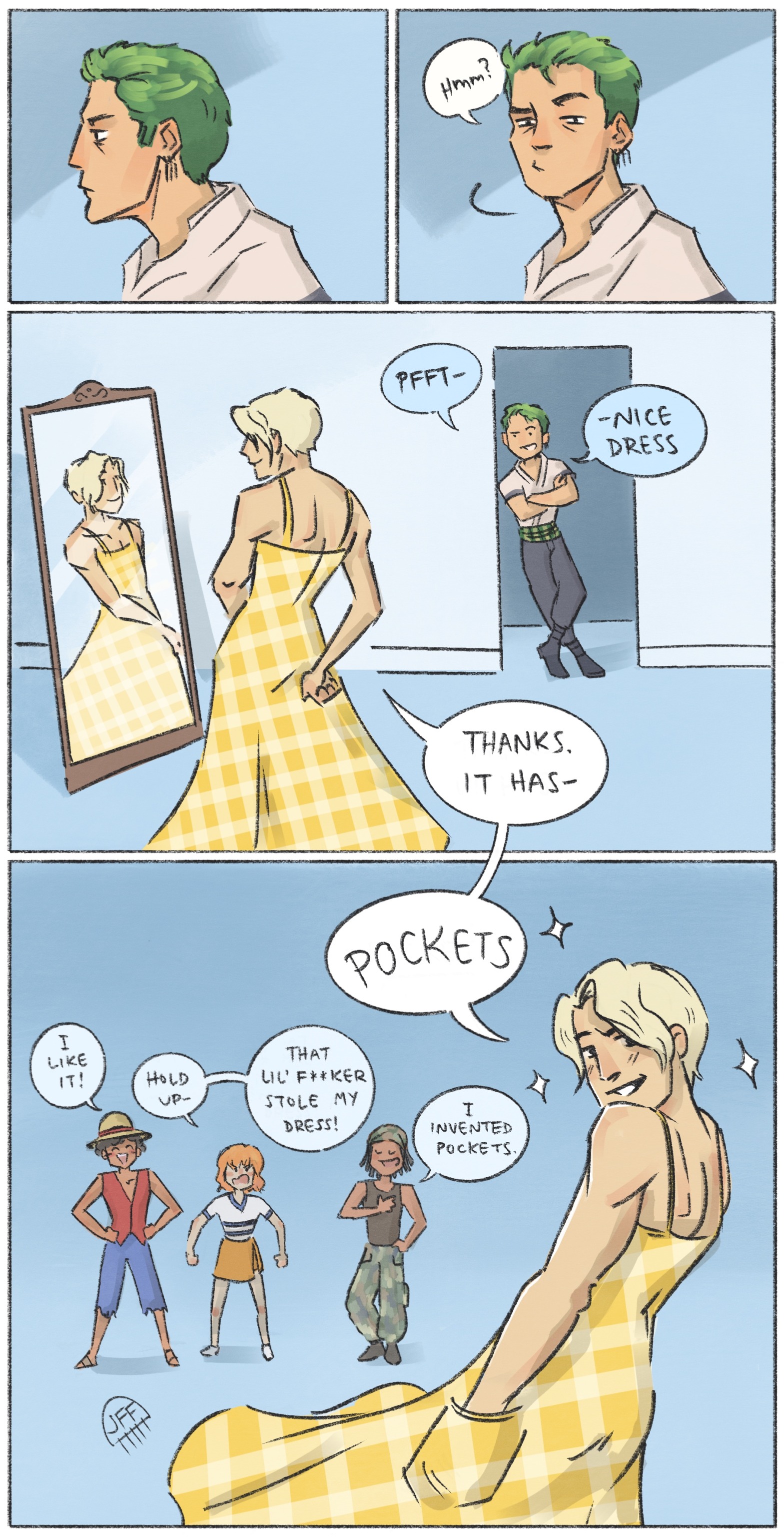 >>286699421>>286699152Sanji in a dress is mid but Luffy in a dress is my fetish and the theme of one of my favouritw doujins