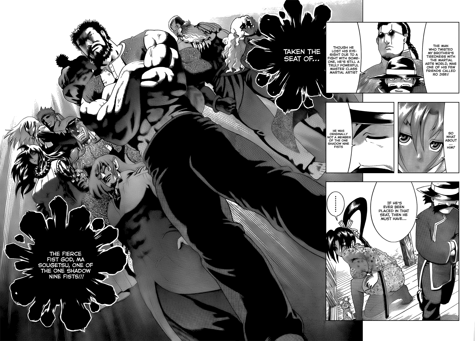 That leaves Shou's master, Ogata the Fist Saint, the Indian guy, the Muay Thai guy and the yet-to be shown Moon fist. Of those I'd think probably Ogata is the strongest.
