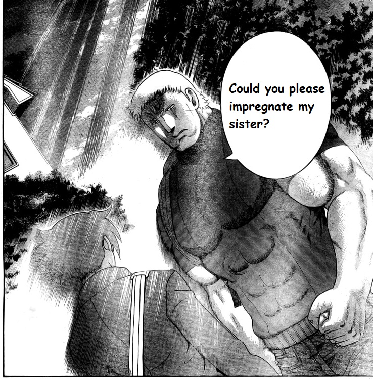 Might be as He's pissed off about the fact that Big Tit bragging about taking Shigeru prisoner