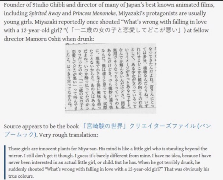>People are just now finding out Miyazaki is a lolichadOnly a little girl lover could depict them so precisely.