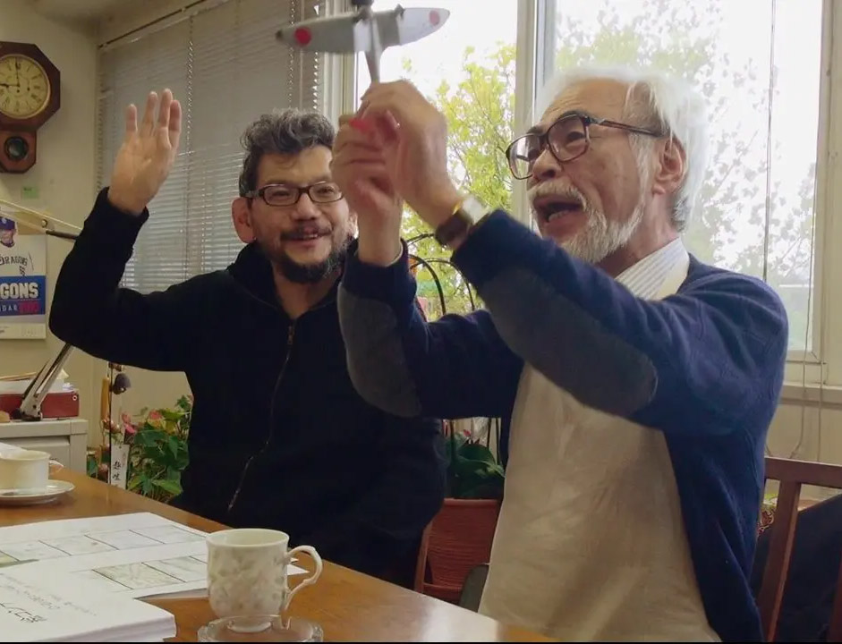 >A few days ago, I visited Nimotsu for the first time in a year.>Miya-san (Hayao Miyazaki) was still energetically drawing his beloved "pictures" freely as he pleased. What an amazing person.>This time too, the photos were taken by a veteran staff member from the Nausicaä days.>The last one is a photo taken when Miya-san, who saw me off partway, said, "Let's shake hands." He's become so serene.>Comment: Hideaki AnnoWhat are they cooking? Miyazaki already dropped the best film of the decade and Anno just improved on End of Evangelion with the expanded ending, can these madmen possibly get more kino than they already are?