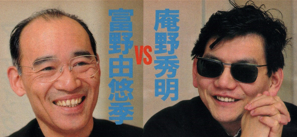 >Is there something wrong with Porco?>I think that it's good as a movie. But because I know Miyazaki-san personally I can't look at it in that way. I can see him too conspicuously on the other side of the film, and that's no good. He's trying to act cool, in other words.>How so?>He's disparaging himself as a pig, but isn't he flying a bright red plane and smoking a cigarette, with two [women], one age-appropriate and one young, by his side?>Hahahahahaha. I get what you mean. Age-wise he's from the same generation as me, right? I understand [those feelings], unconditionally. So although I thought,"What a pain," I'm not going to get angry at him (laughs).>I say this a lot, but he's acting very presumptuous. With Tomino-san's works it feels like [Tomino himself] is there dancing naked, and I love that! (Clenching his fist) With Miya-san's recent works it feels like, "You're pretending to be naked, but you're really wearing underwear, aren't you!" and I absolutely hate that. I'm like, "Take off that last piece!" (Already getting carried away)>Hahahaha.>On top of that, he's wearing flashy underwear!