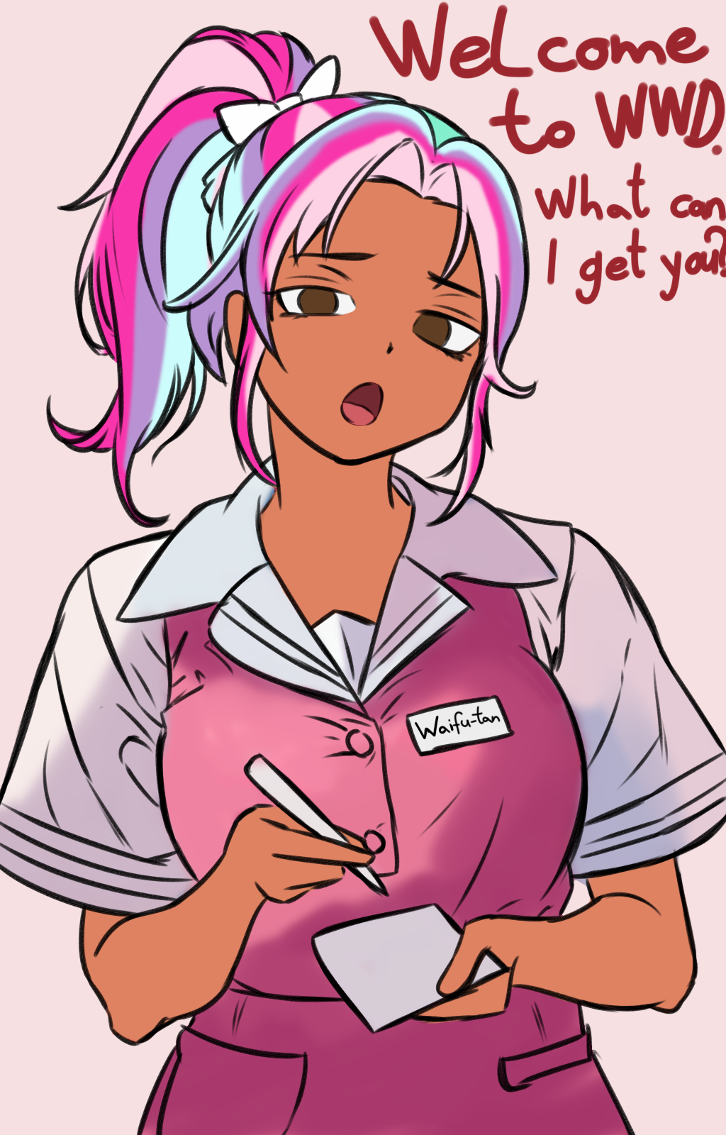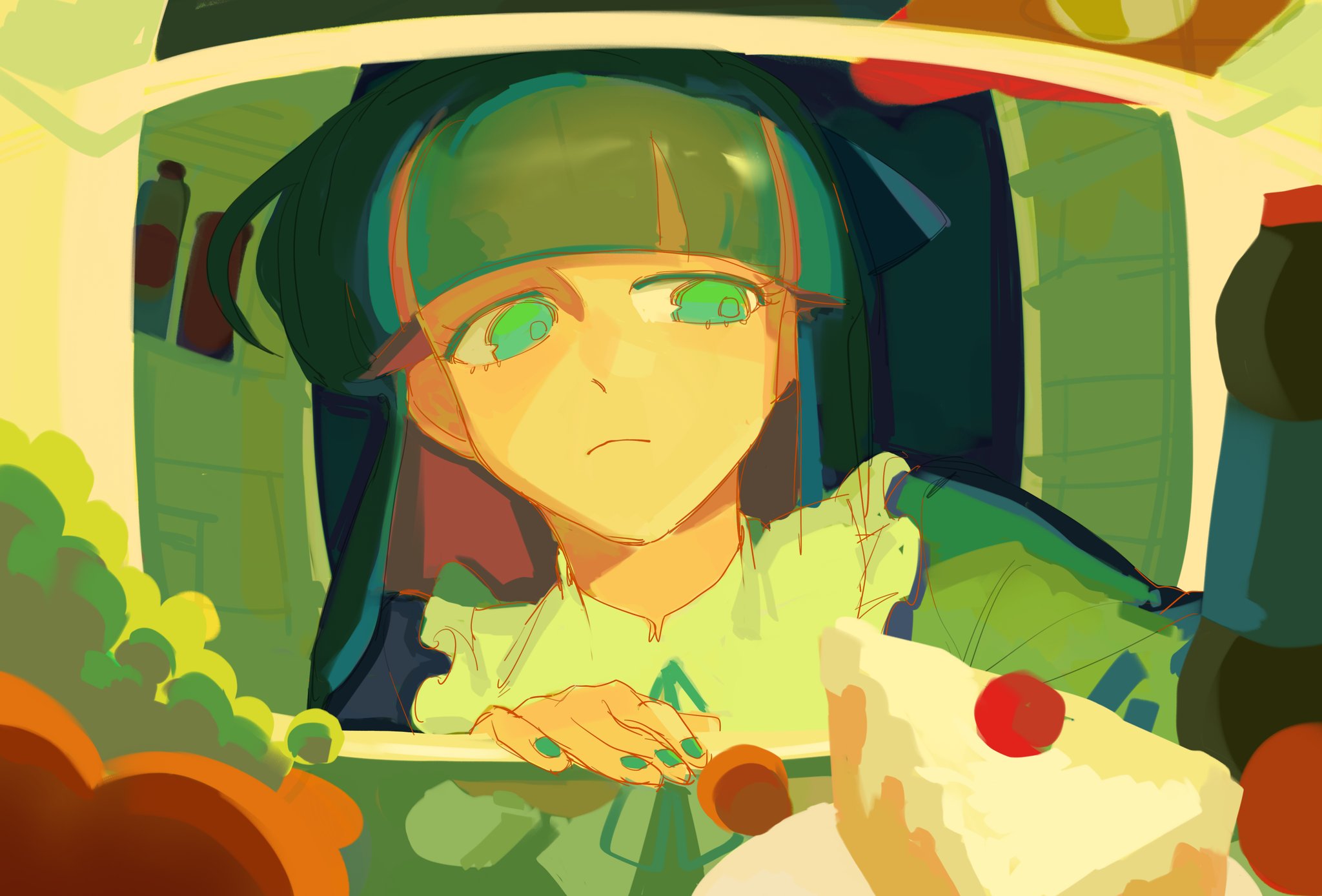 Good morning. Requesting my love, Dolce. It's also my birthday in a little over a week, so anything related to that would be lovely.-Relaxing in a hammock-With a cute hat tied under her chin-Something spooky for Friday the 13th-Cupping a hand behind her ear, maybe because she didn't hear the first time-Giving her chocolates or a cookie for white day-Shuffling cards or doing some kind of card trick-Wearing a bunnysuit (updated) https://catbox.moe/c/h8vh5s-Making the bed, especially making the cover billow as she straightens it out, maybe with Pico holding the other end, or doing any other spring cleaning-With her arms outstretched blocking a doorway, a hallway, or something similar while holding her twintails and having them stream across her arms or coil around them, maybe with a teasing smile implying I'll have to go through her first https://catbox.moe/c/lao76y-Showing something she made with pride-Rabbit Hole bunny refs https://catbox.moe/c/oog8gp Hips and leg focus much appreciated-Showing off a lovely view (especially if it's high up)-Kicking a chair back on two legs and she almost tips over but catches herself-As a powerful silhouette (maybe showing her peeking out?) or her and Pico combining to create an intimidating one-Doing this gesture while talking or arguing https://catbox.moe/c/p8vo77-Looking off to the side at something else only for me to gently pull her gaze in my direction-Expressing herself with her eyebrows-Rolling her eyes-With an unapproachable aura (I'm going to try anyway)-Burger date https://catbox.moe/c/h234ll-Moving or wiggling her ears (or me fondling them)I'll be delighted to receive anything cute, sexy, cool, spooky or romantic however. Happy weekend.