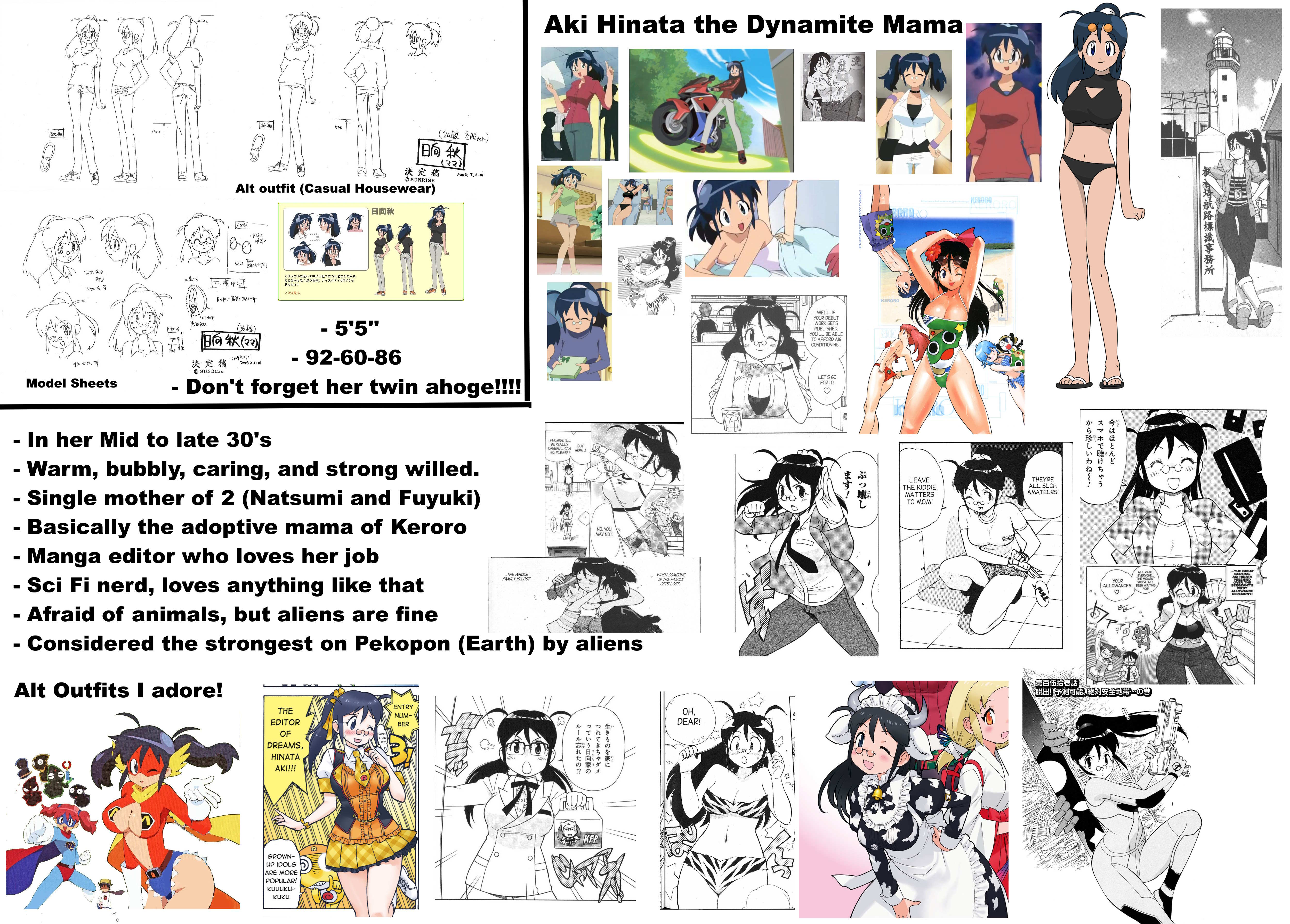 Requesting my wife, the absolute dynamite mama, Aki Hinata from Keroro Gunso!!!!!!!!NSFW is fine as long as its respectful.SI refs: https://catbox/ (dot) moe/c/5g2gxf Outfits: https://catbox.moe/c/ekpnw8The 8th was our FIFTH ANNIVERSARY YAAAAY! Requesting Aki and I celebrating with a nice ramen dinner and cake together. The 28th of March is also my son, Fuyuki's birthday so I will request us celebrating that with a mothman or flat woods themed cake!https://files.catbox.moe/iwmept.jpgOther Fuyuki ideas>On a cryptid road trip with SI and Keroro>Fishing for the Oklahoma Octopus with SI>Getting caught watching/simping over his favorite Vtuber, Sumeragi Shumelhttps://files.catbox.moe/o8iuuo.png>Fuyuki playing UMA (unidentified mysterious animal) Musume>Fuyuki raging over AI generated cryptid sightings Other Aki ideas>Aki singing in the Planet of the Apes musical (the Simpsons one)>Aki dressed like a bee >Gyaru Aki>Aki in a JeankiniHave a great weekend!