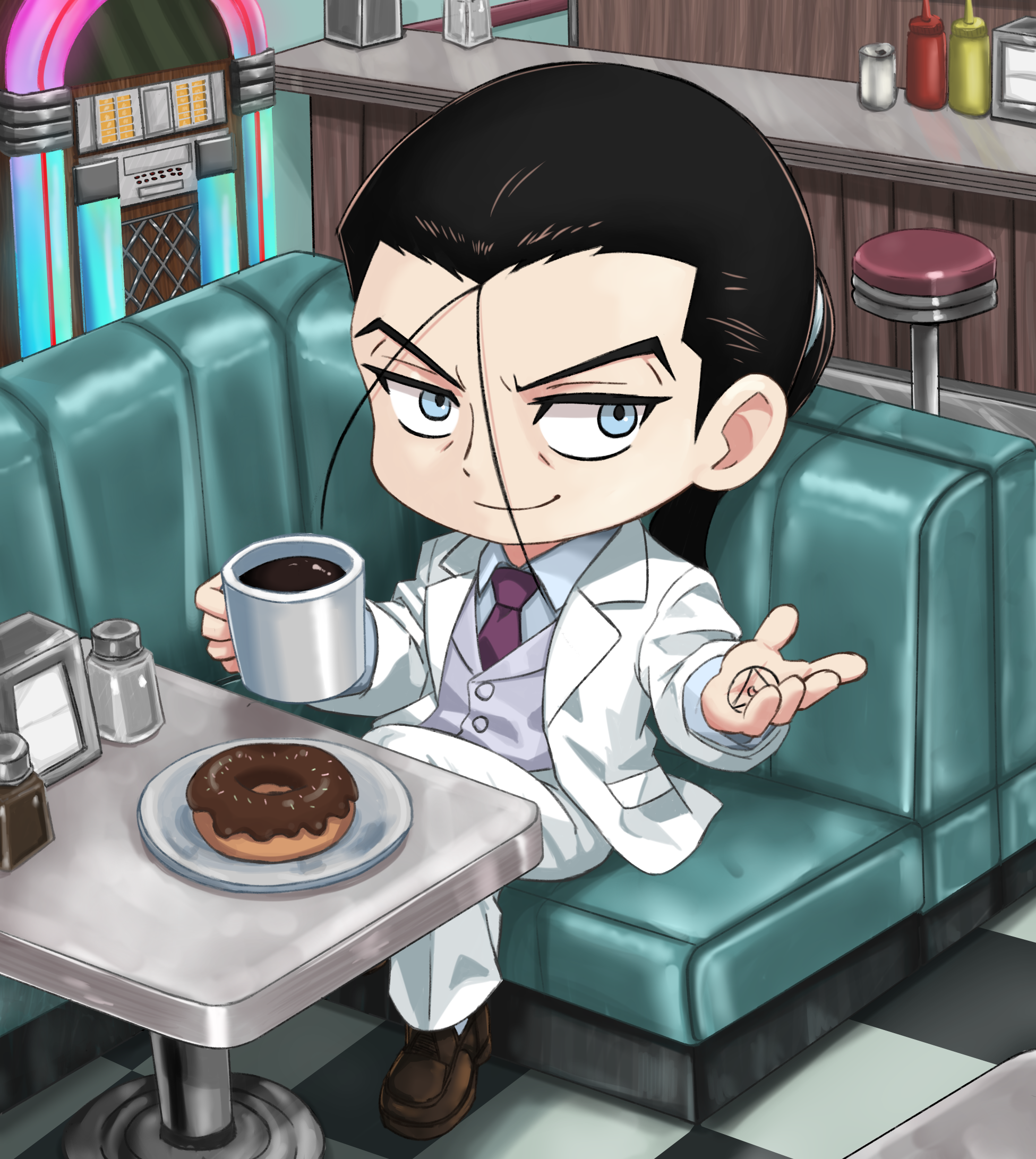 Good evening! Requesting my wife Nonoa! Some ideas I have are:-Wearing bird brain Teto clothes-In workout clothes, wiping sweat from her face-Messily cooking dinner-Happily cheering/drinking from a wooden mug of beer-Wearing a school girl outfit and running with bread in her mouth (or riding her motorcycle)-Wearing a suit/formal clothes, pushing her glasses up with her saying "I happen to be an expert on this topic"-Nonoa wearing a Phillies or a Philadelphia Eagles jerseyAnything that isn't those ideas are also welcomed. Thanks in advance!