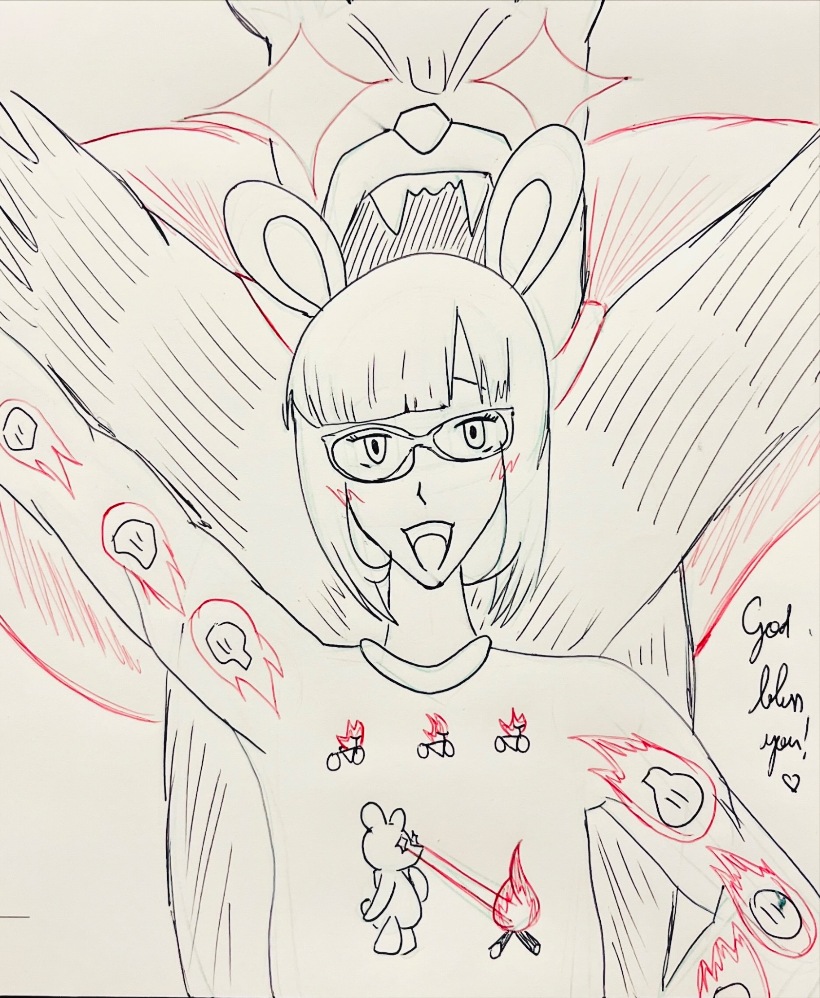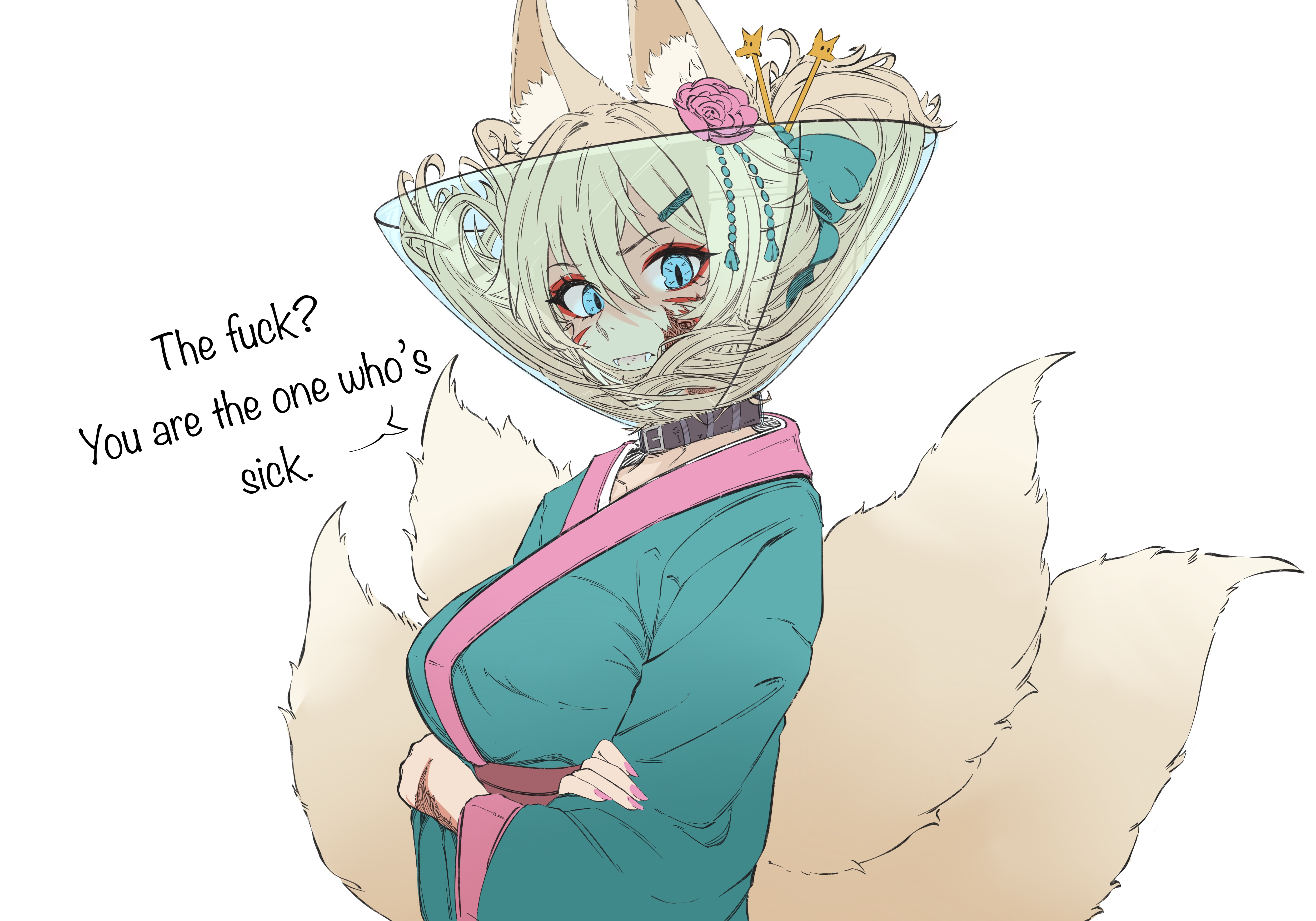 Requesting Hagoromo Gitsune forming a heart with her tails, smiling while posing like this (https://files.catbox.moe/y4gvnm.jpg), or like this (https://files.catbox.moe/lqzwj9.jpg). Anything else is fine, too.