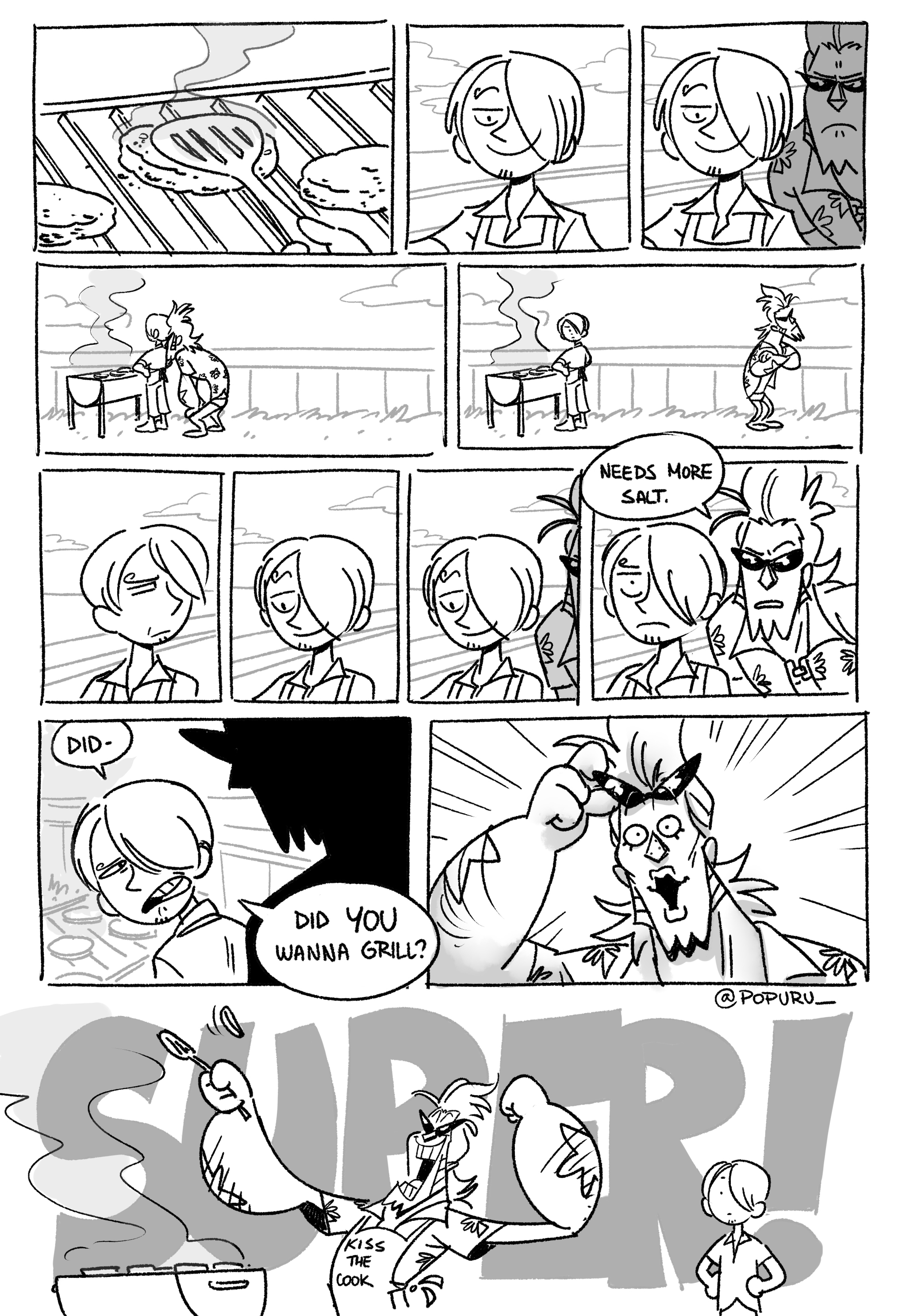 Imagine if Speed's breast milk was used in Sanji's cooking, with breast milk bottles on hand Nami and Robin would drink for a strength boost.