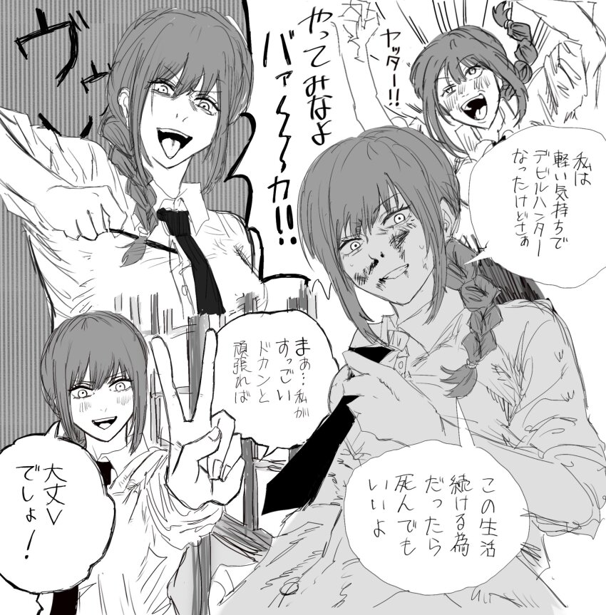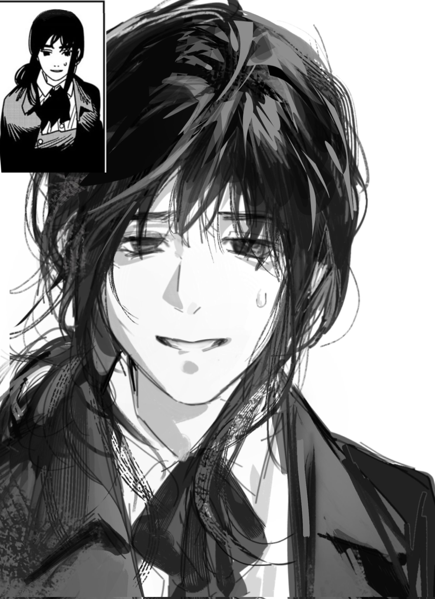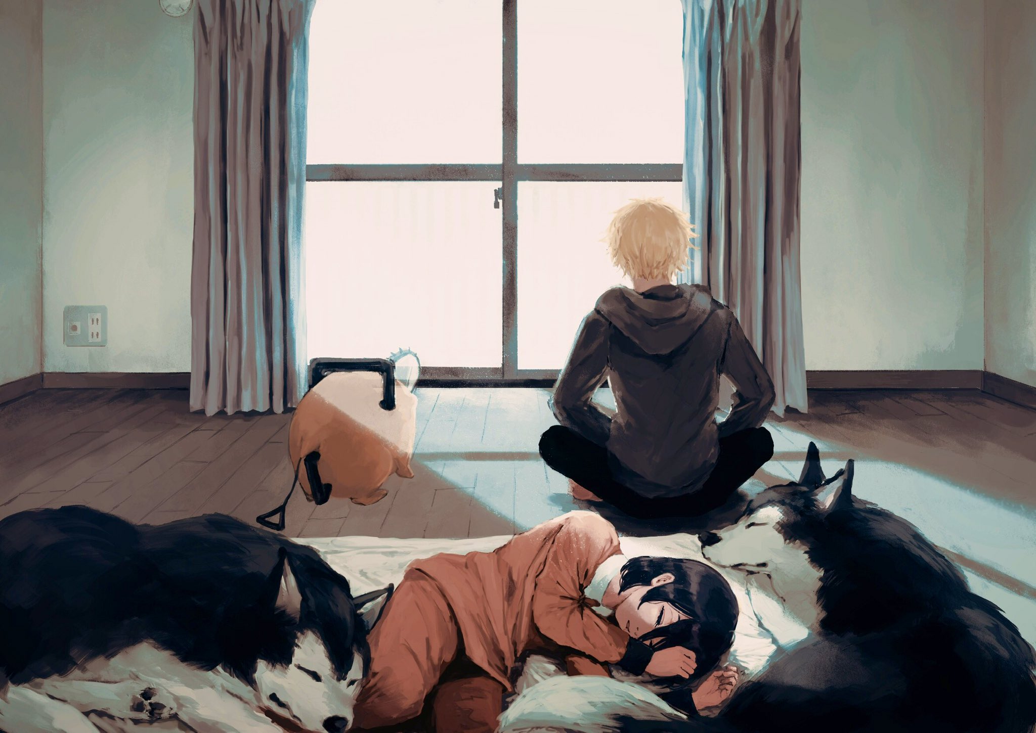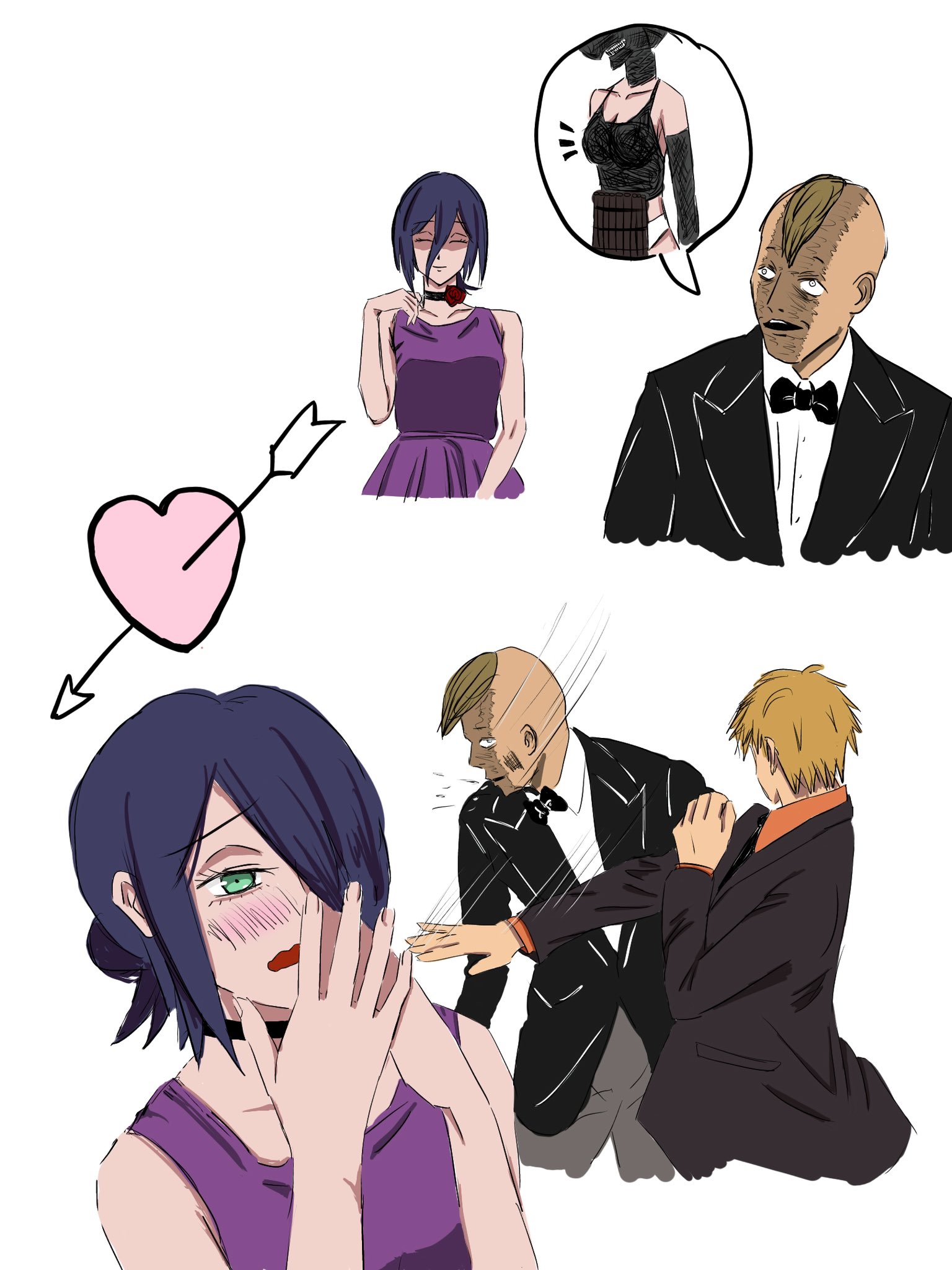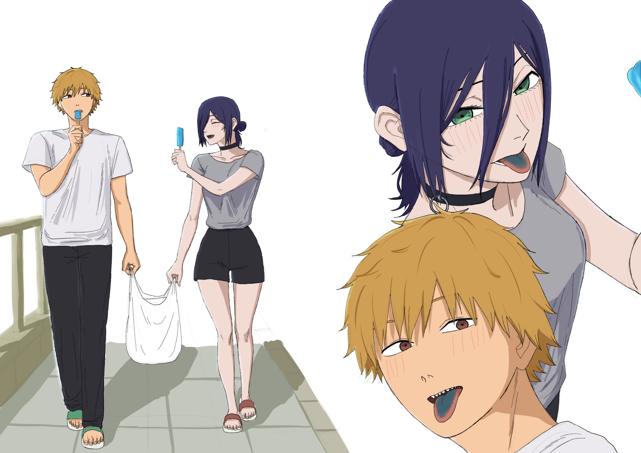 >>286731662>Last chapter has Denji simply living through the motions because he did everything and remembers everything, but feels void as if something's lacking inside him. He has a dog w/ him.>Suddenly someone knocks the door>Finally found you, Denji.>He just turns around and doesn't answer and gives the visitor his back. He simply thought it was that thing he was expecting that could fill his void.>Is this what you want?>he mumbles something inaudible for us, but she hears perfectly.>And do you really feel satisfied??>No answer>He just slightly shakes his head after some minutes, not facing her.>She grits her teeth wanting to smack him or kick him in his balls, but chooses to sit down.>It's just as i expected, you are such an idiot and because of that, you can't think properly. But i can understand why the insatisfaction. I also feel insatisfied with things (keeps cuddling Denji's dog, who seems to have taken a liking for that person).>Let's think a way together>Denji turns his head after not facing her. He finds out she also brought a book with an illustration that brings him some deja vu he feels like remembering, but doesn't know the resson why: the book says "Chainsaw Man vs War devil: a story documented by Fumiko Mifune">After all... we are people with unreachable dreams.