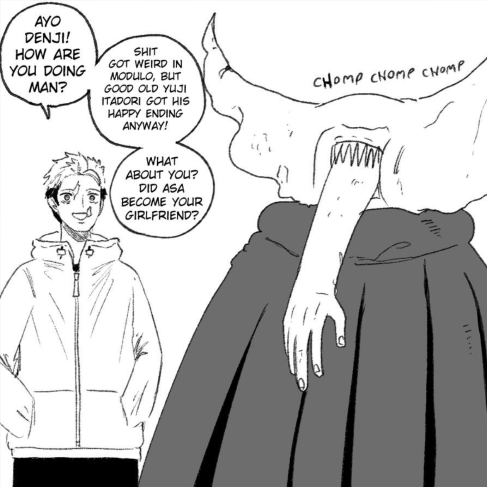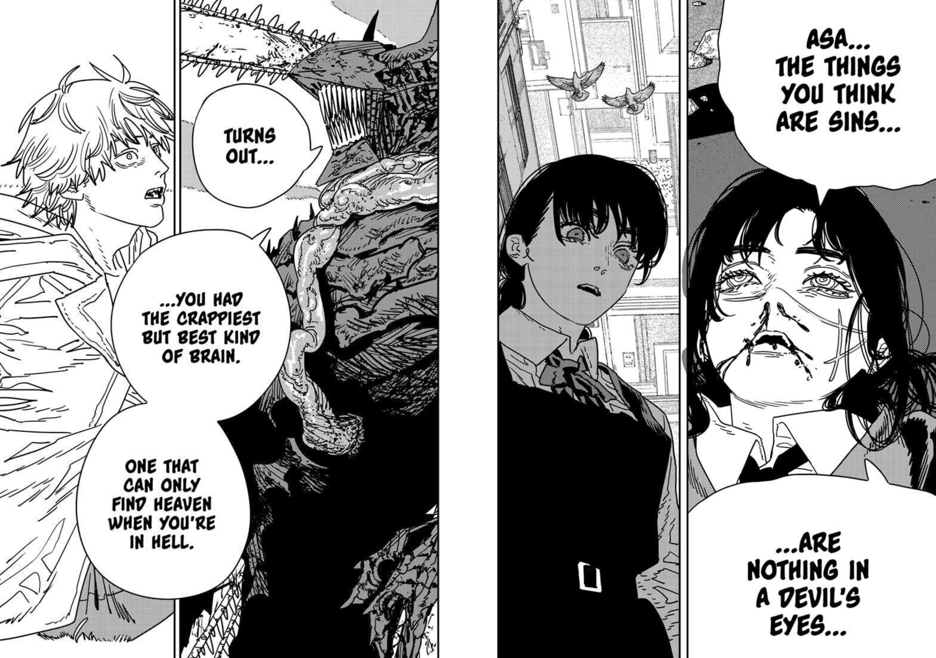 >>286723045Denji giving birth to Yoshida goldfish-style was by far the stupidest thing that happened in this shitshow. I wouldn't even complain if the chapter was fun, but it was boring as hell.