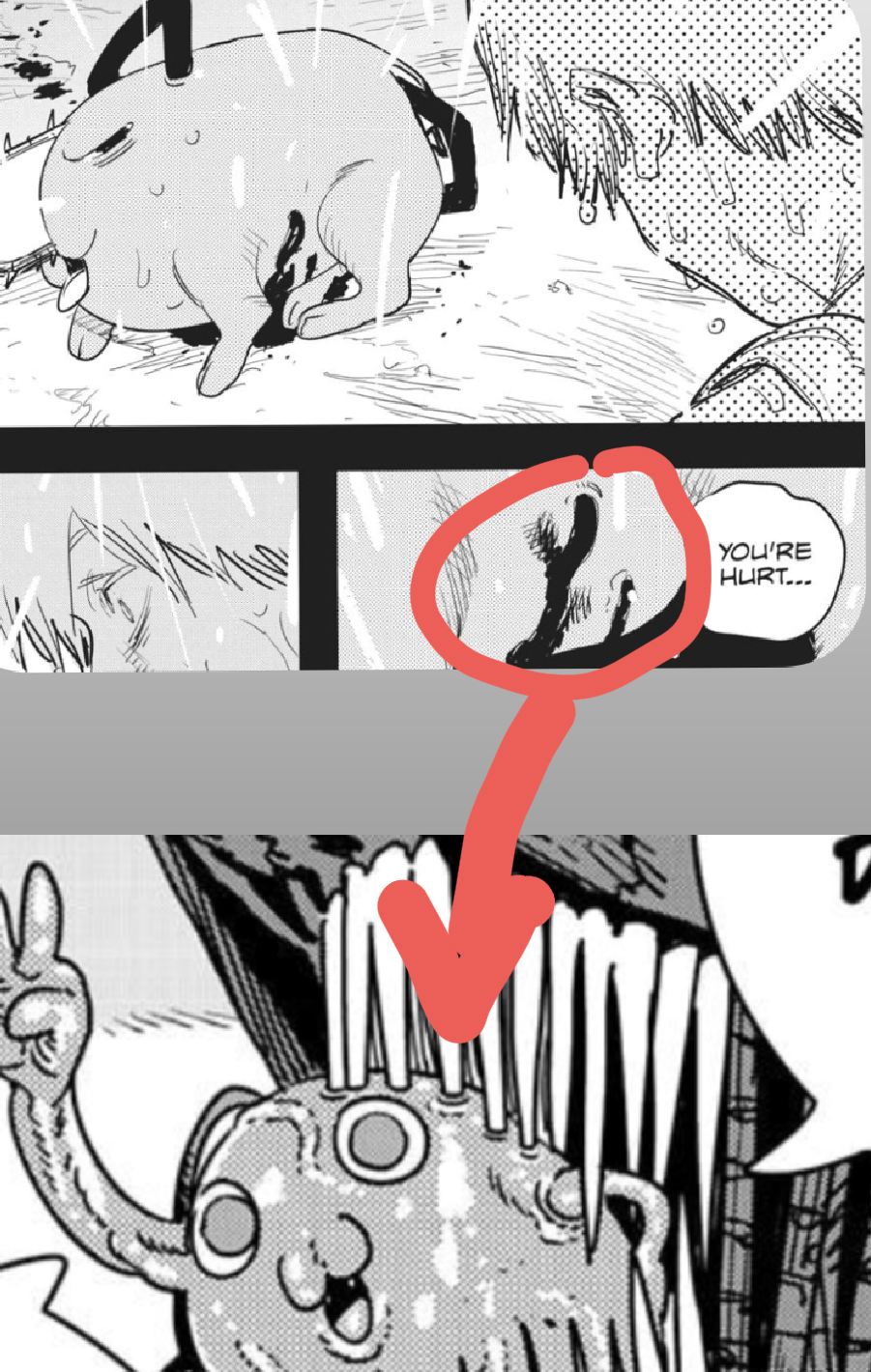 >>286724745>I'm guessing at some point next chapter Pochita will somehow be regurgitated or reborn and the manga will continue, or it will set up the third part about finding him again.Denji could either reinvent the chainsaw (assuming CSM is Chainsaw Devil) or puke Pochita (assuming their stomachs are still connected like they were in the Aging World).But I wonder if we'll get an actual continuation or it's just>the cycle continues...!and he leaves it at that.
