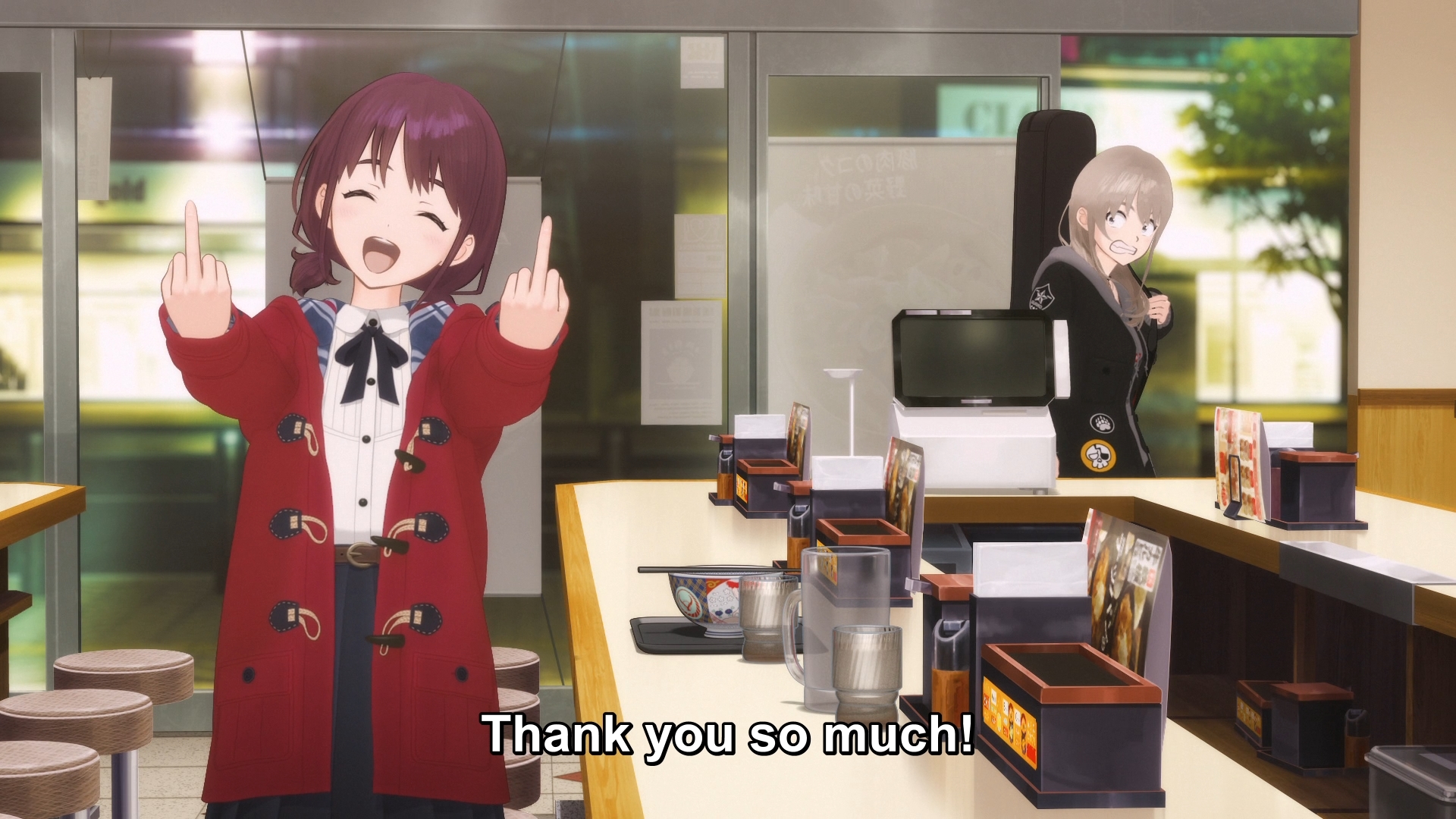 Tomo looks like she's about to throw up