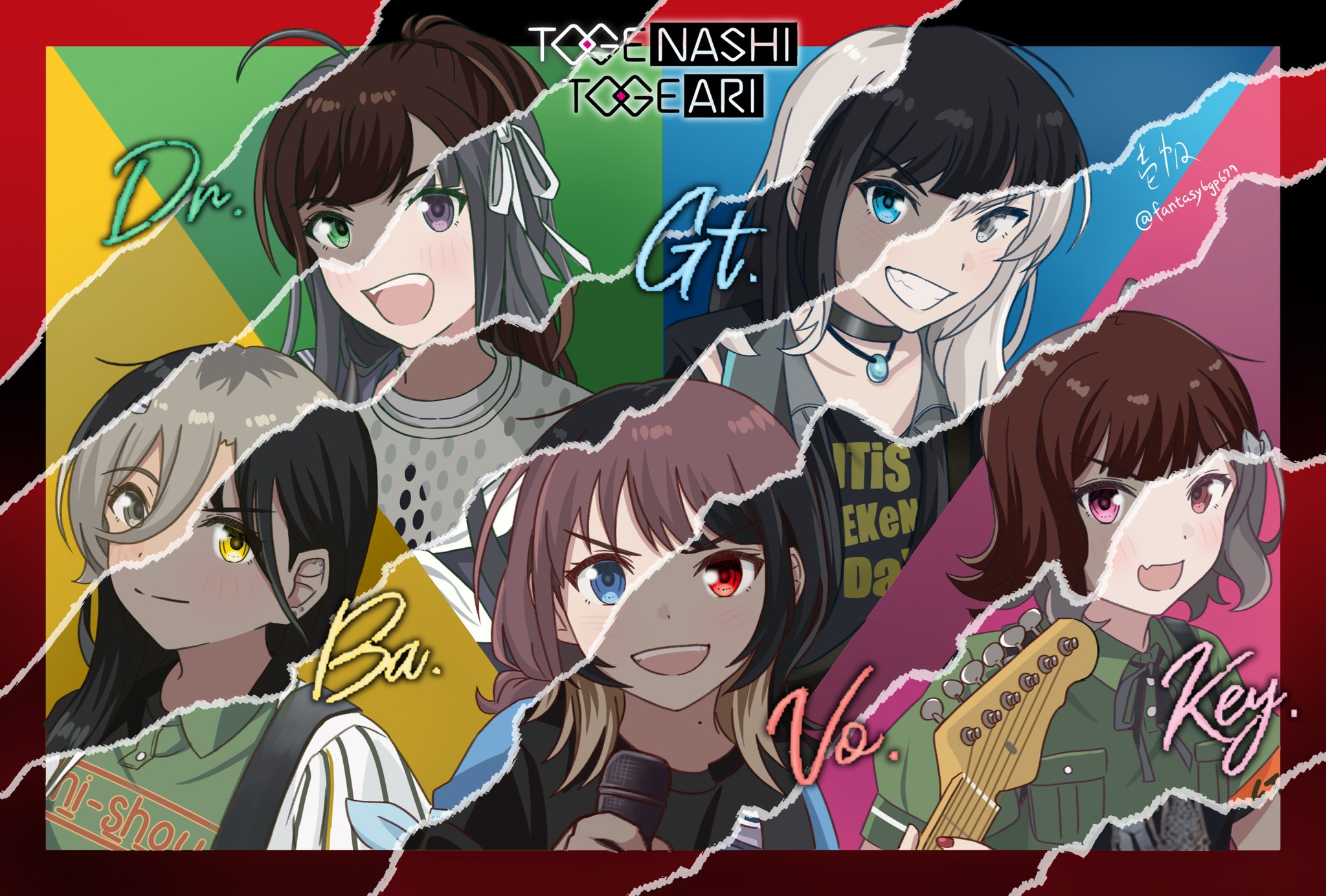 keyboard, lead guitar, gt+vocal, drums, bass