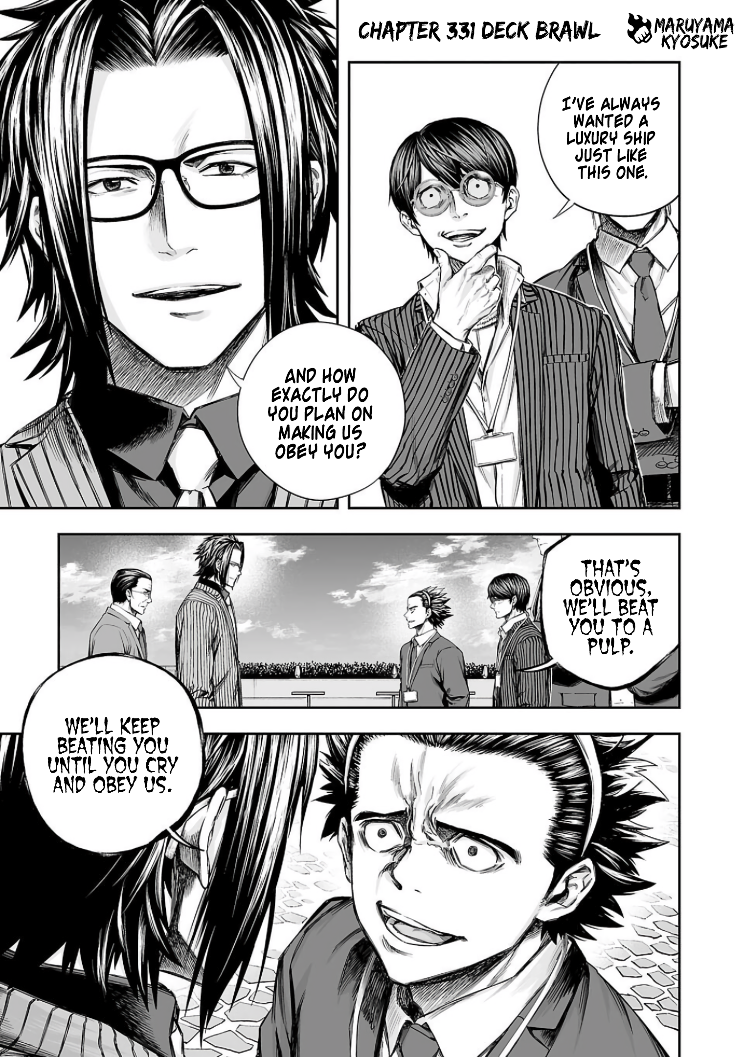Man I gotta catch up, I probably let the chapters build up enough. This series is painful to wait for, but it's good to go through a whole arc all at once, last I read was near the beginning of Teru forming mafia