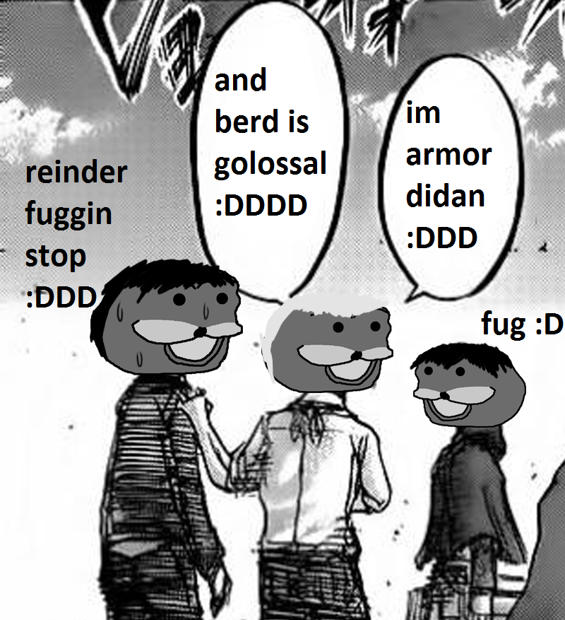 >>286726658>WAAAA WAAAA IM A BIG BABY KEK AND I ENDED UP NOT DOING SHIT SO MY ENTIRE COUNTRY AND PEOPLE GOT COMPLETELY WIPED OUT TO THE LAST FUCKING ATOM BECAUSE IM A BIG KEKY BABYPeople are still trying to convince me it was actually totally great, well foreshadowed and good writing.Isayama could've cemented himself as modern Devilman with a shonen that sincerely went above the rest of the rabble and instead we got cuck crying and failing like a little bitch.What the FUCK happened?