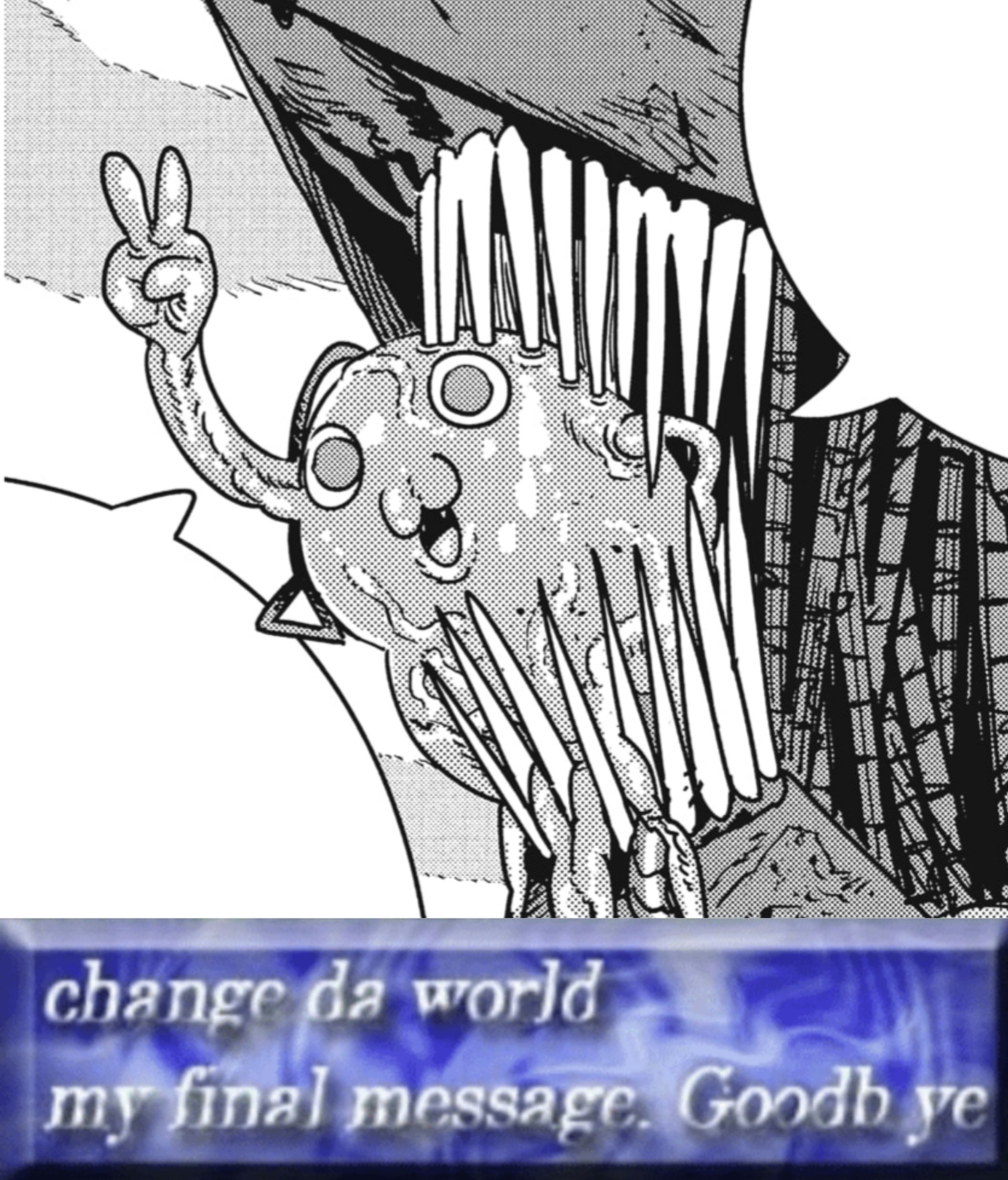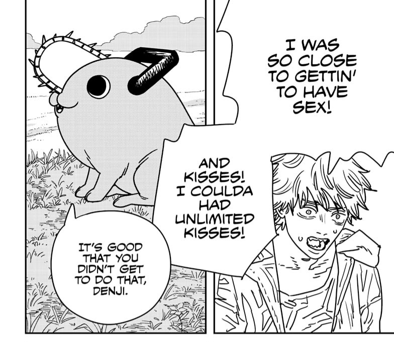 Pochita should just have said: denji the world is fucked up beyond repair now only chance to fulfill your dreams now is erasing myself