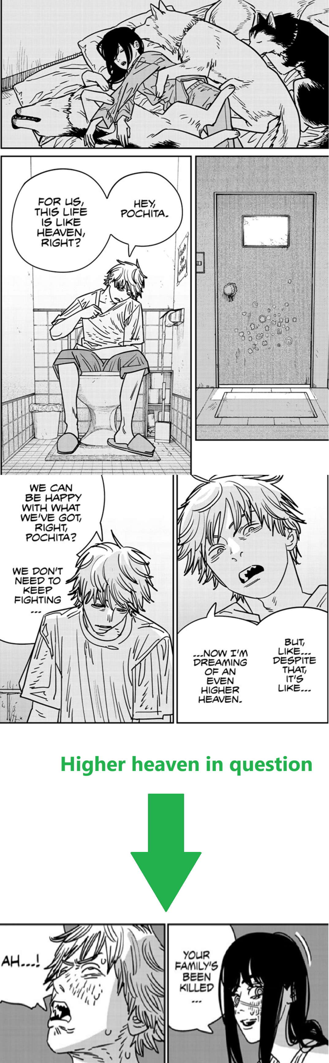 Pochitas point is that Denji will never truly appreciate people like Nayuta and Asa that wanted the best for him, he instead will always focus in chasing higher heavens because he isn't satisfied with what he already had.