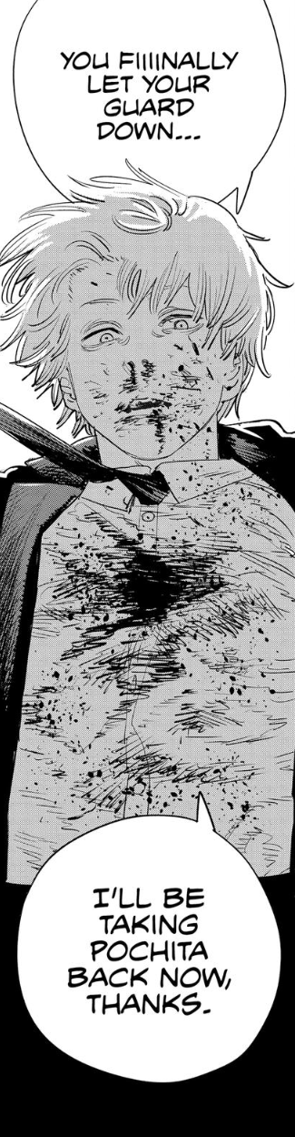 Part 2 portrays Denji as a very unlikeable person, he constantly makes mistakes and never learns, everything he fought for in part 1 went down the gutter, he is a dog again and a slave of sex. Denji let his sister die, preferring whores over rescuing her, In the end Denji also ignored Asa in favor of sex with Yoru.So he deserves the hate, literally everyone here now understands that Denji is toxic towards everyone that tries to get close to him and he never did anything to change that. In fact, he embranced his brainless family-killing machine nature. Pochita has seen enough, we have seen enough too. Time to end this.