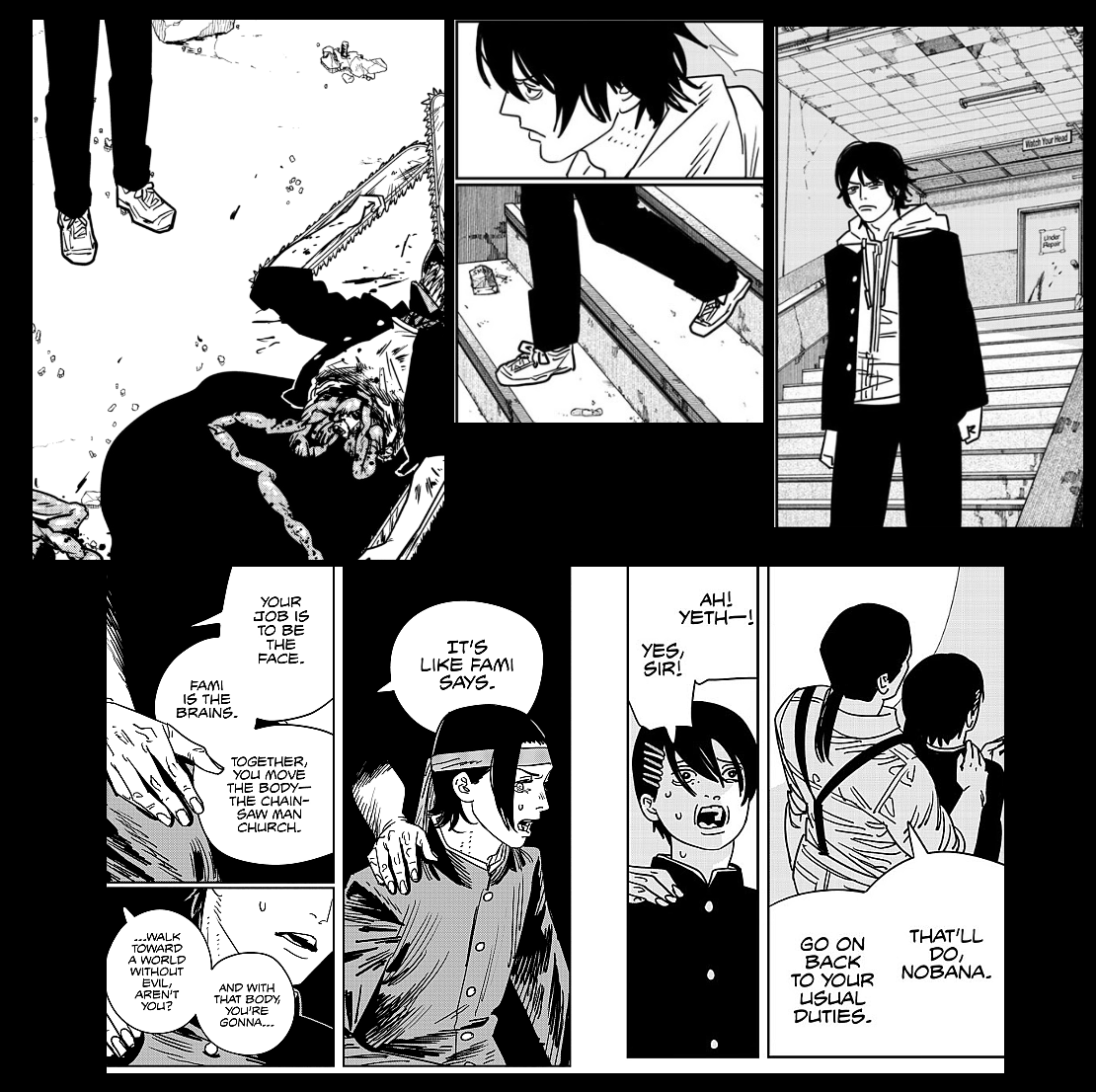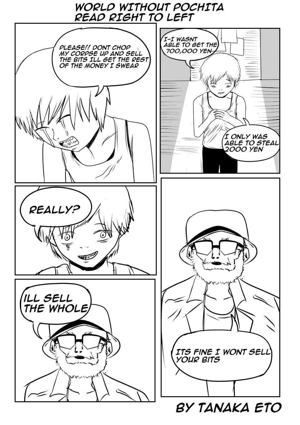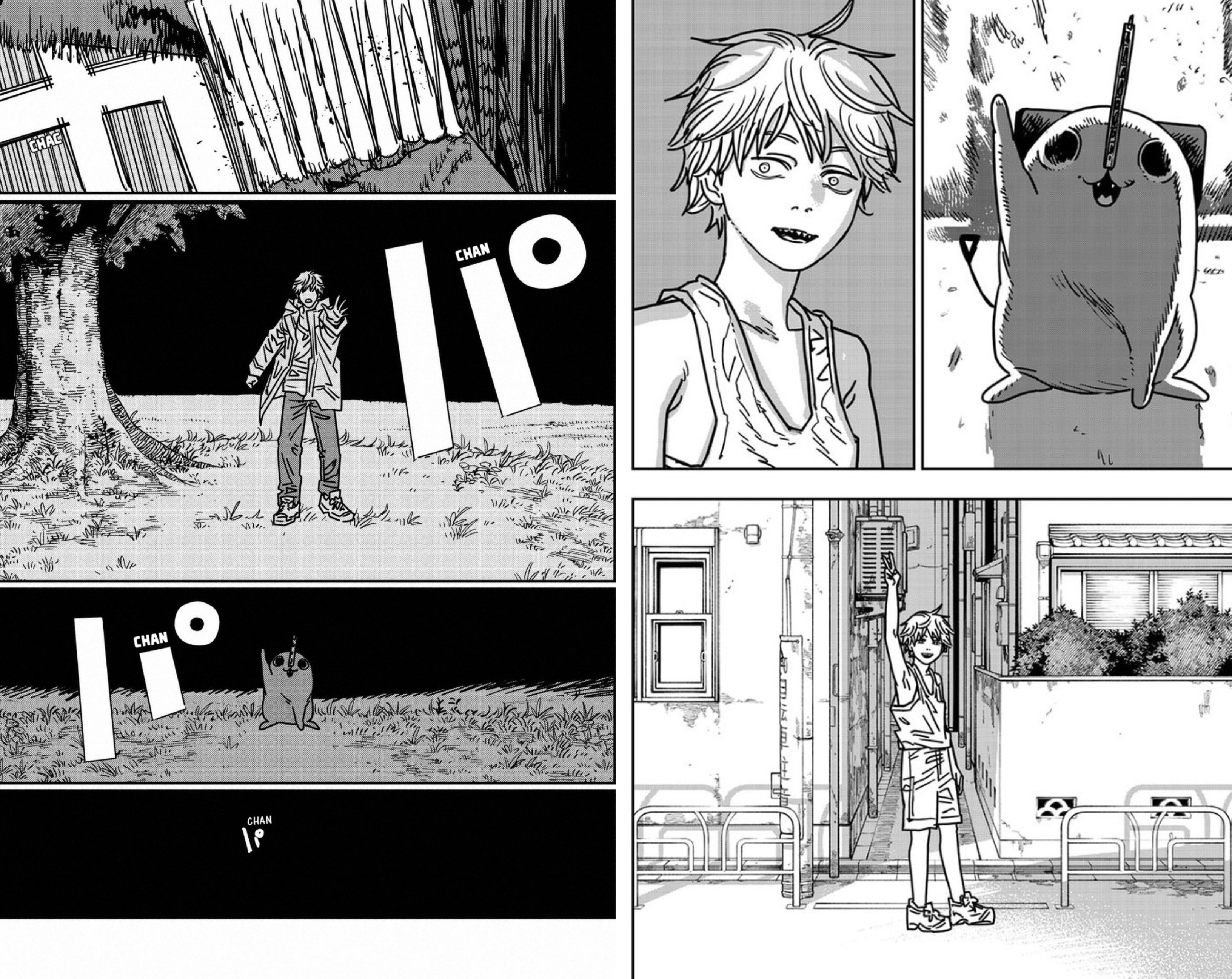 >>286745689Next chapter will begin with a fat, balding ojisan coming out of the shack. It turns out Denji became a prostitute for the Yakuza since he didn't have the means to become a devil hunter without Pochita. The End.