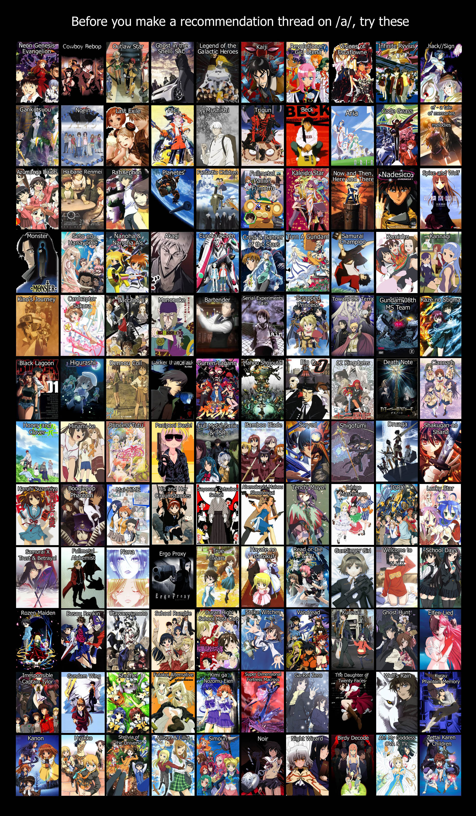 >>286747363Nice to see Vandread in there! >>286746549dropped haruhi, guess i'm a normie now