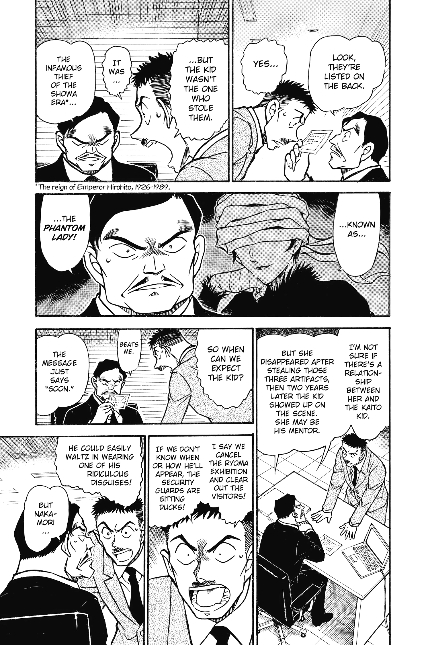 >>286805489There's a prequel to this case in Magic Kaito, if you want to know who Kaito's mom is.>https://weebdex.org/chapter/la1pof52s3/1Fun fact: Kaito's mom shows up in chapter 1 as a regular housewife. The Phantom Lady stuff is a retcon.