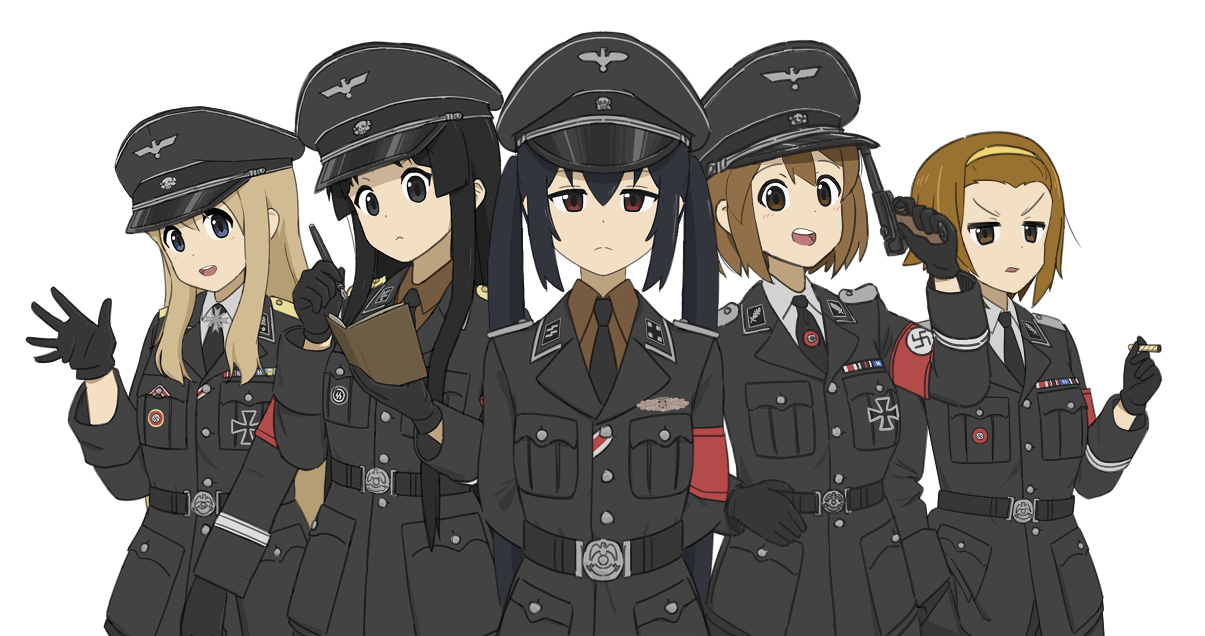 >>286913756Cute Mugi. I would turn in jews to her and enjoy her smile and friendly "danke schön". Mio, Azusa, and Ritsu seem too serious, I'd want to avoid them in case they're mean. I would be scared of Yui accidentally shooting me or herself with that Luger. Somebody should really take that away from her before somebody gets hurt.