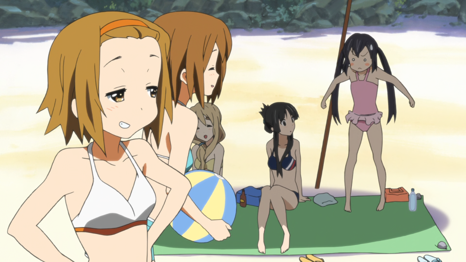 We never really see Mugi do anything in the beach episodes, except have a wonderful time watching the others.