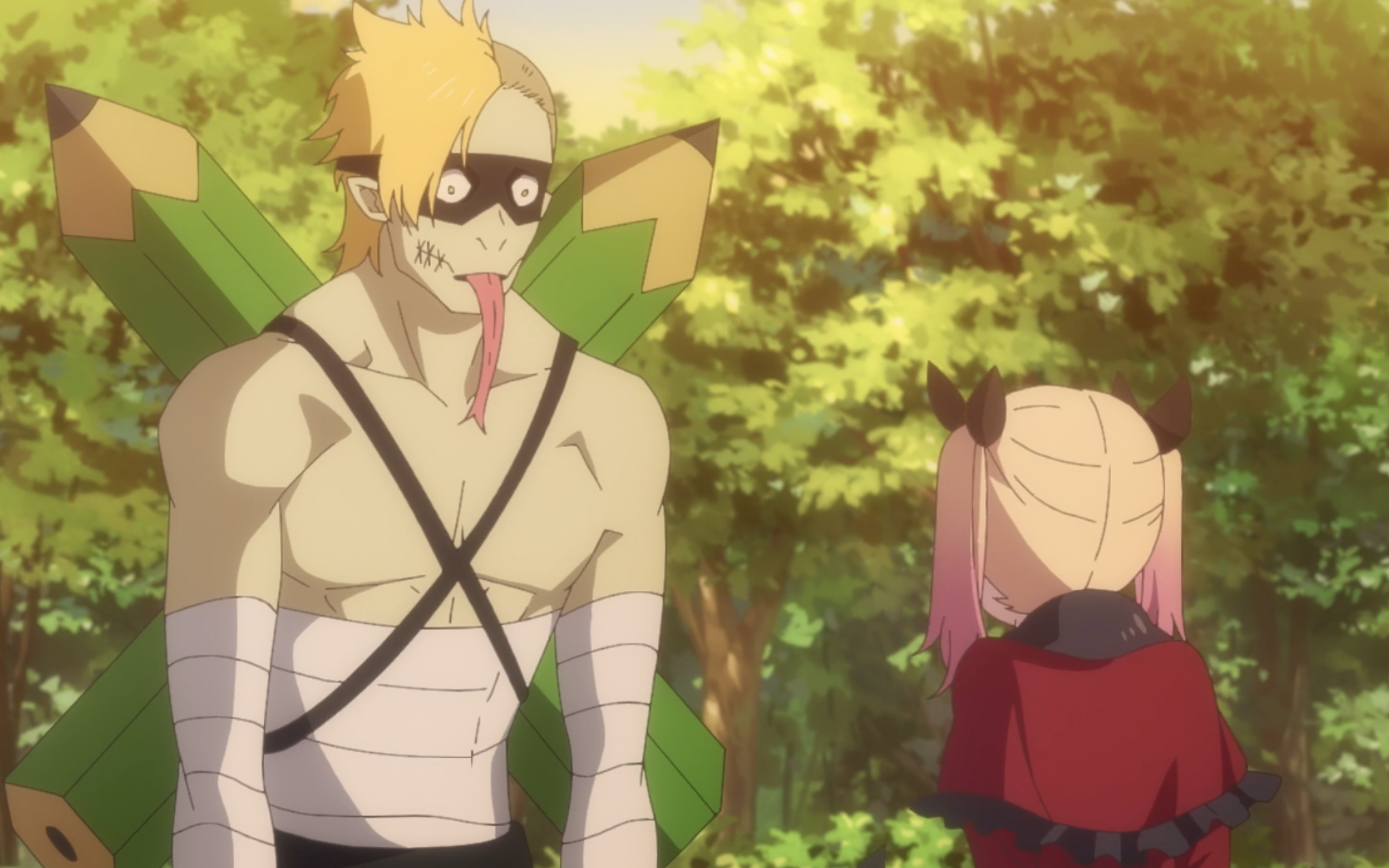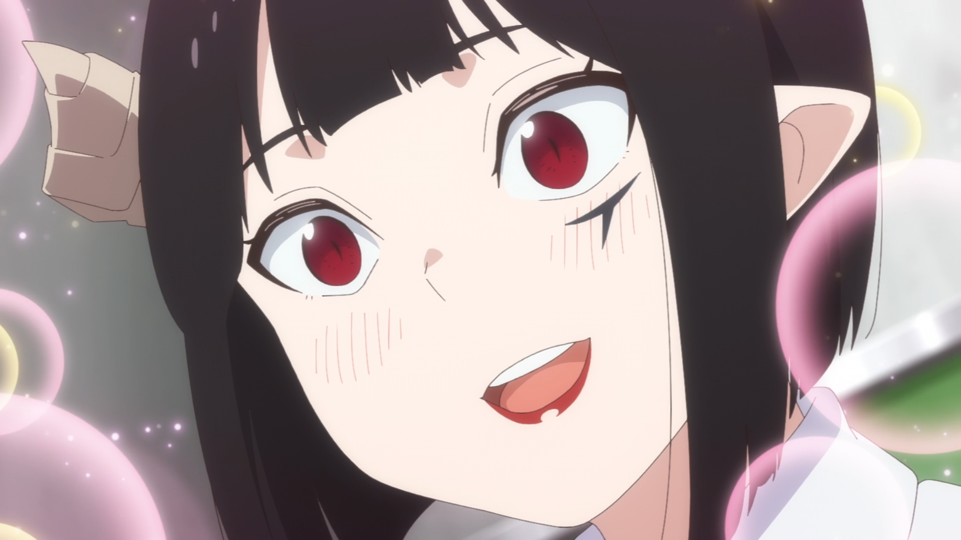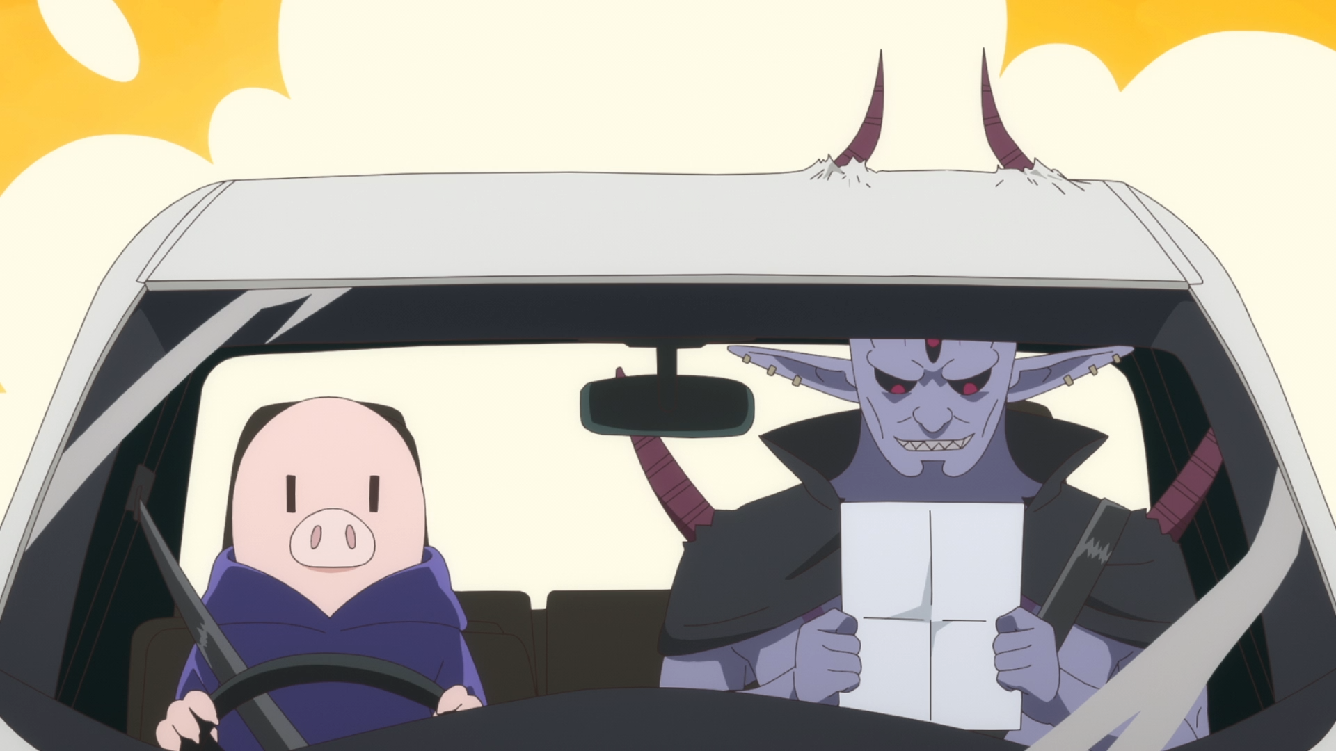 >When it comes to creating each episode of The Demon King's Daughter Is Too Kind!!, it's not the animation or the story that provides the biggest challenge. It's the music. Each episode of the anime contains an original children's song sung by Dou (and sometimes the other characters join in). “I've occasionally had insert songs in my anime up until now, but I don't think any other productions have done one [in every episode]. So, we took on the challenge of doing it—and it was actually my idea—but when we actually started doing it, I realized how much of a hassle it was.”