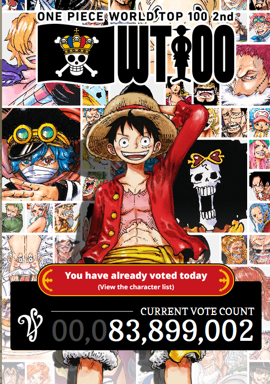>>286936473Who did you guys vote for today?https://onepiecewt100-2026.com/en/vote/