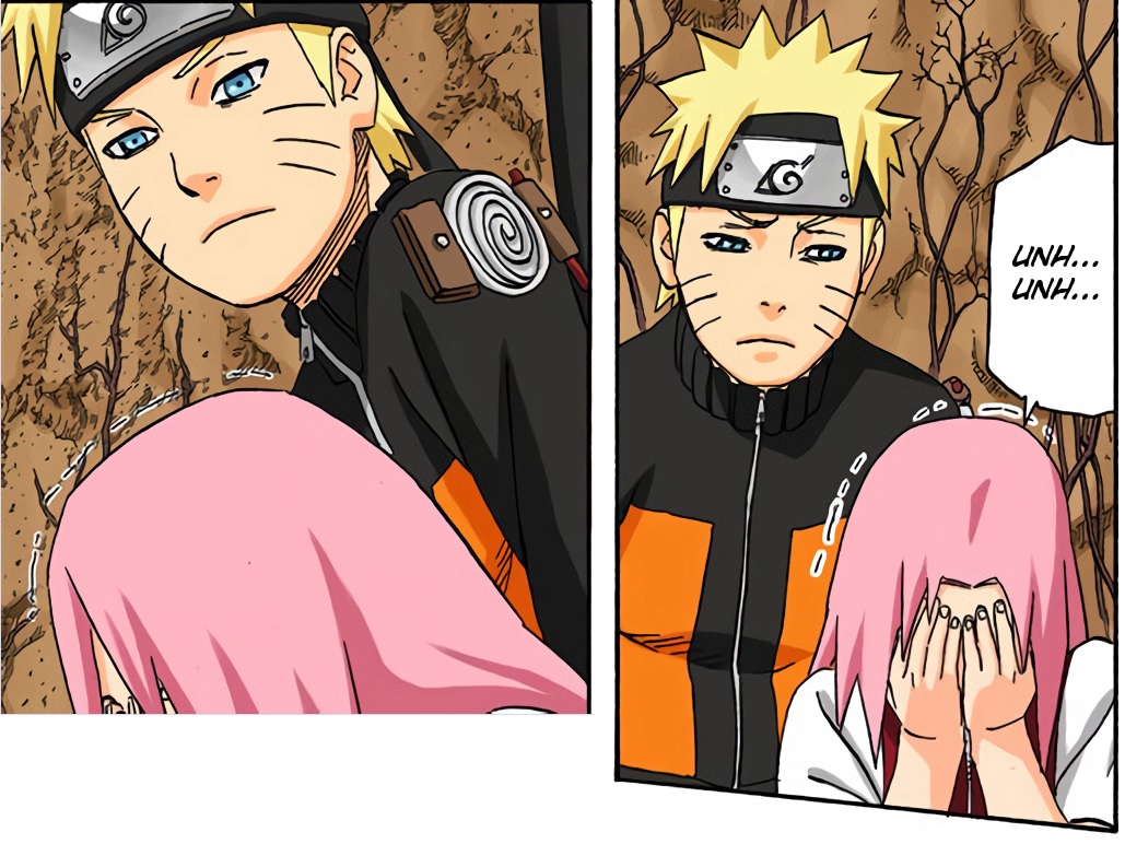 Naruto and Sakura are grappling with the scary reality that things have escalated into a national incident whereas before they could entertain the possibility of Sasuke coming back and getting a slap on the wrist from Tsunade.