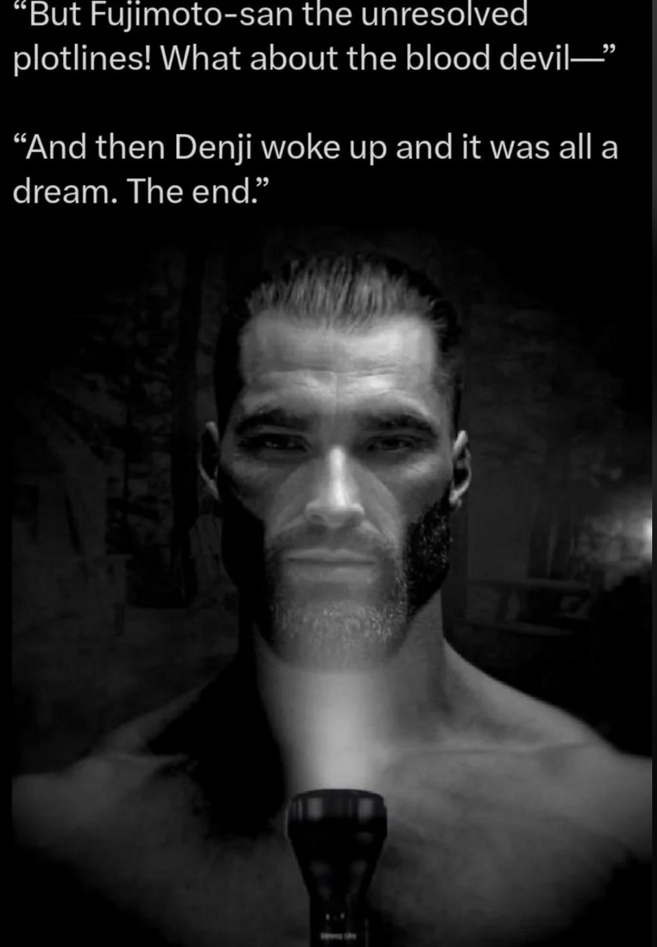 He could have at least ended it with a final panel where Denji finally gets to have sex or something like that, but not even that