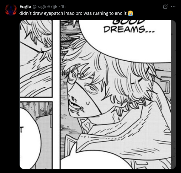 im expecting a prolouge of some bull shit, and the actual last chapter is denji cut up