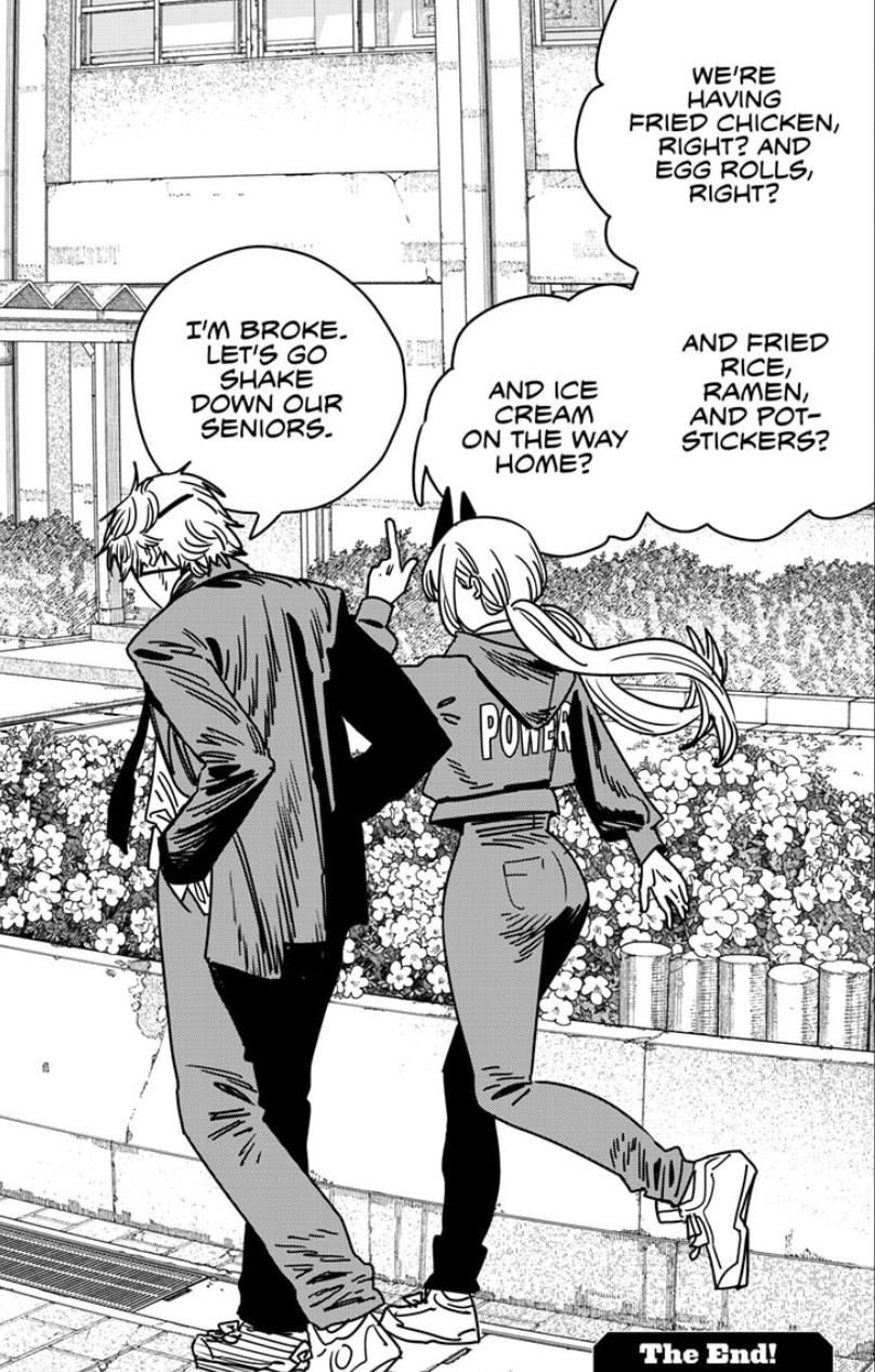 >be me>haven't even *started* Part 2, because there was no Power in it>knew the manga would be dogshit before anyone else complained>only read the last chapter now because it had Power in itFujimoto masterfully turned a terrible continuation of an above average shonen into one of the best shonen endings of all time, because he brought Power back.That's about all.Peace out.