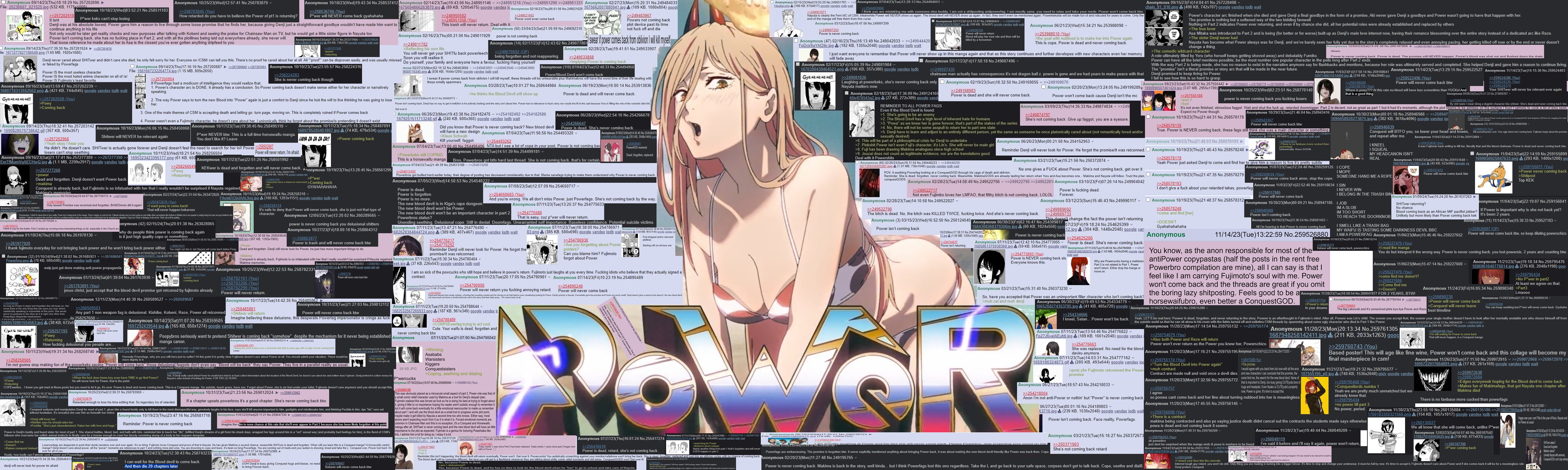 Since the big thread is filled with 20 replies a minute, can I get a manga panel of Power returning in Part 2?? Or is this just based on unconfirmed hearsay? I don't want another SnK EH situation.