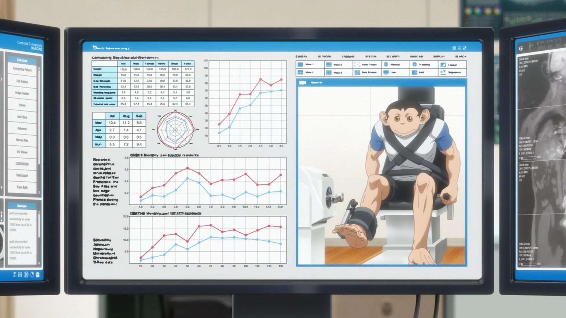 >>286960203It's a baseball league here in the world of Monkey Mountain,played by the great monkeys, which started when the first ball and batand the rules of the game were handed down to them.In the Monkey League, a number of great players arosefrom among the nameless monkeys,whose faces and appearances all looked the same.They included the legendary home run king,who batted an unprecedented, record-breaking80 home runs in one year, Steroid Monkey;the one who bested the god of batting, Monkey River's career batting averageby two thousandths, the miracle hitting machine, Upper Monkey;the greatest catcher of the Bigfoot era, Mister Monkey;later, as manager, he would go on to break the record for most league wins,with a legendary ten-season-long streak!Then came the golden age of the M-League.A miracle monkey came alongand shattered those previous legends one by one--the monster, Monkey Blue!This maverick of the league was the only one with blue hair,who, despite weathering ugly discrimination and crafty persecution,triumphed over them with overwhelming talent, ultimately becoming a hero,and a symbol of hope for the monkeys!Although a rookie, Blue put the brakes to the king, Steroid Monkey!Breaking his bat as well as his heart, Blue drove him to retirement.Then, with his mighty pitching arm,Blue led the underdog team Monkey and Club to victory,preventing Bigfoot's championship streak from reaching 11.The public accepted this new hair color,and there was no doubt in anybody's mindthat the era of Monkey Blue had begun! But then......that great tragedy, when a near-perfect game was foiled,and a monkey was killed, took place!