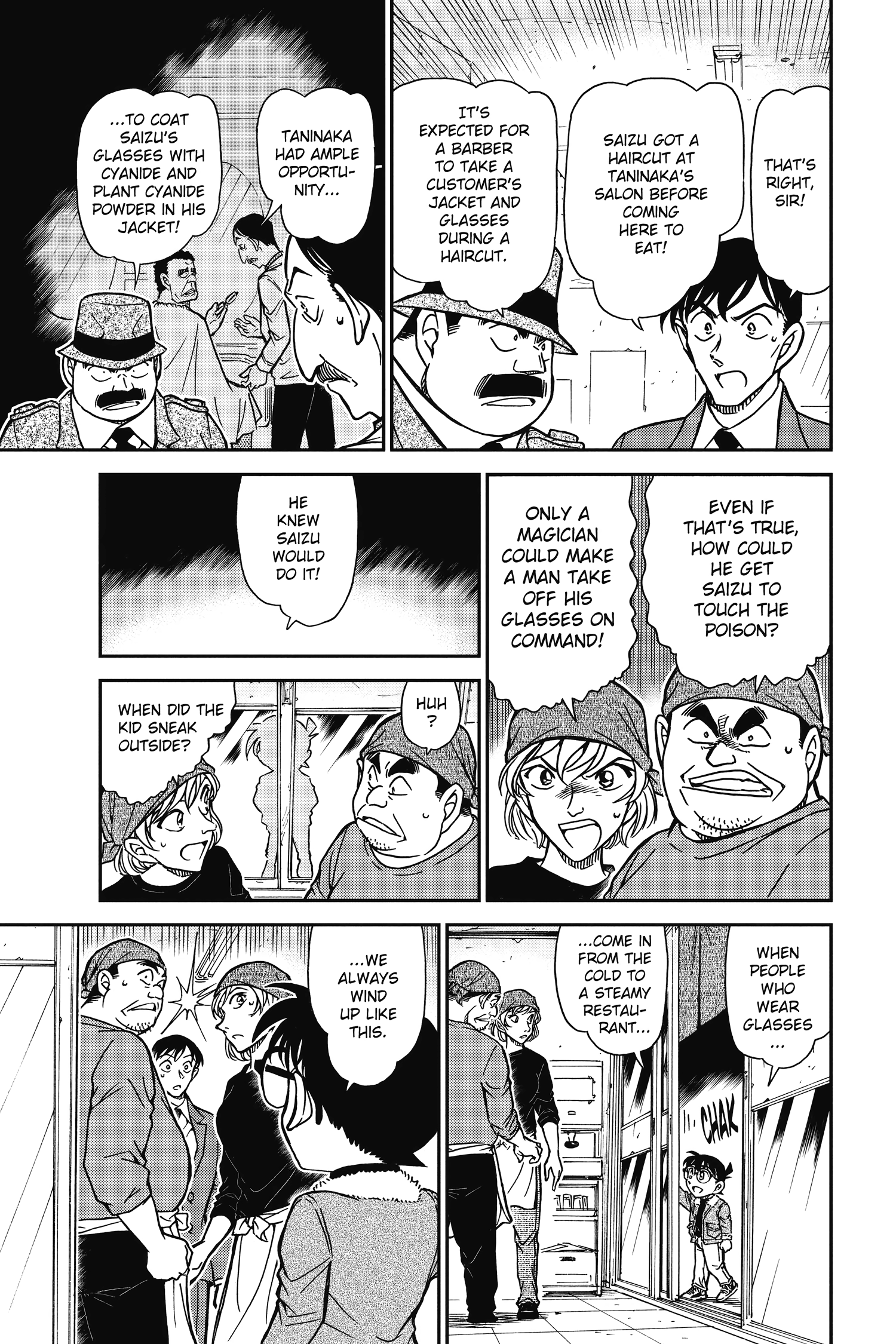 >>287000766>>287000789Very suspsicious of Takagi mentioning the glasses like that. My guess is the barber replaced the glasses of the victim with poisoned glasses after giving him a haircut, then later swapped them out.
