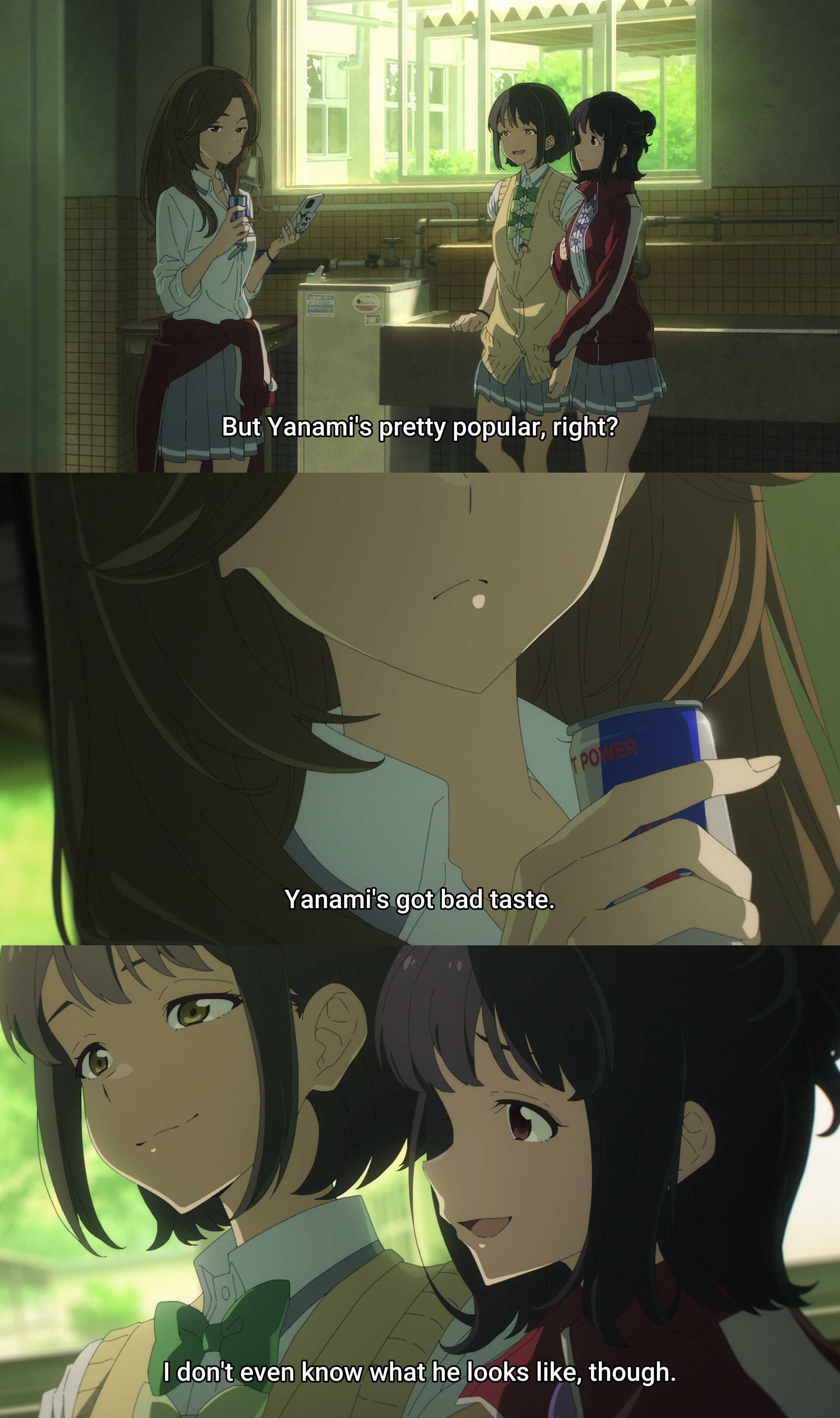 Komari stammers so much I couldn't bear listening to her. One thing the show nailed is making it clear why all the makeines didn't get the guy. Because who the fuck would date them.