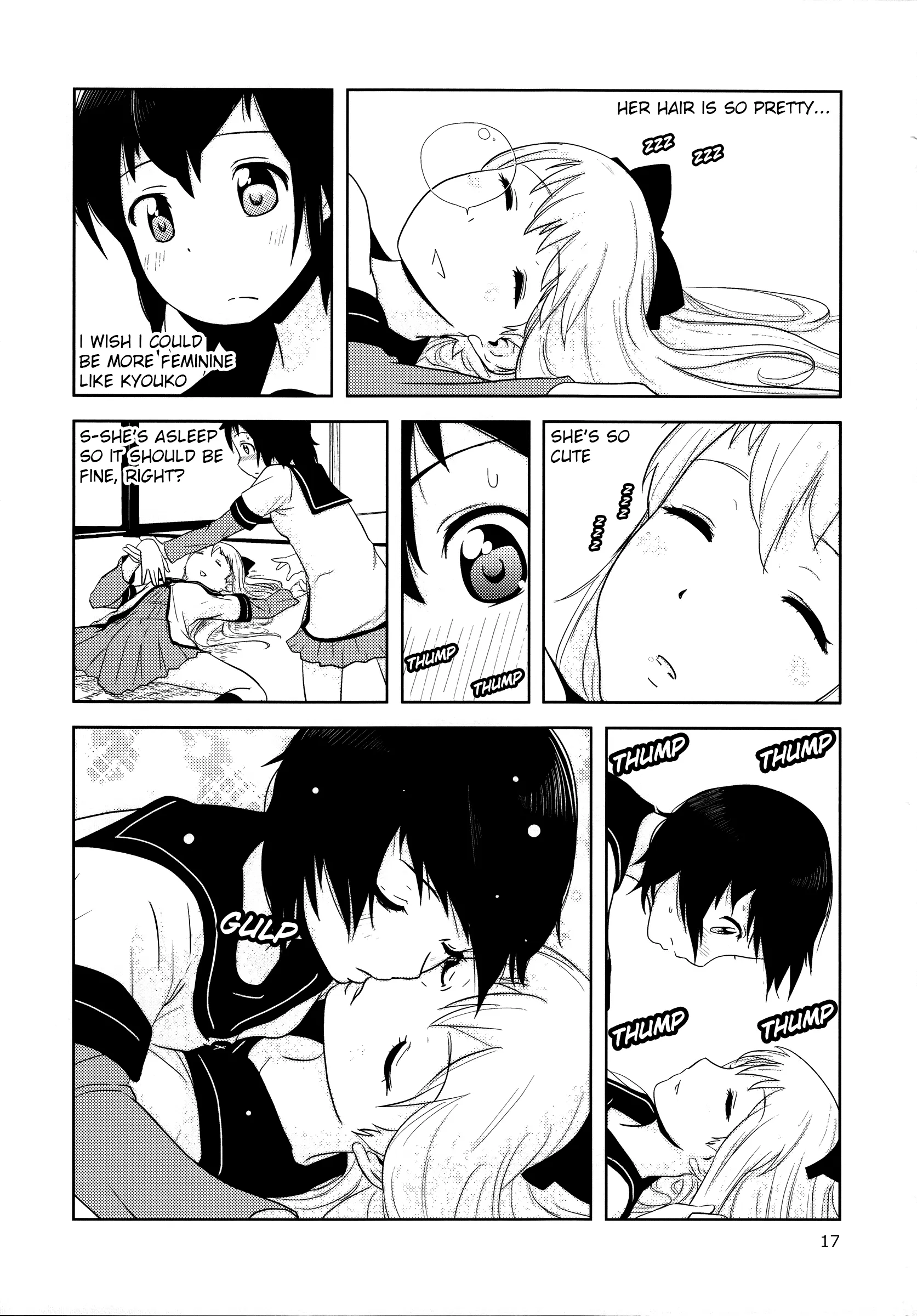 >>287059559Episode 1: Kyouko gives Akari the key to their love nestChapter 173: Kyouko gets on top of Akari and gets her face super closeIce skating chapter: She falls down and tries to look up Akari's skirtAnd I think there's a chapter where she rubs her cheek against Akari's and tries to coax her into something, but I forgot.I guess she doesn't physically touch her in these examples, so you may be technically right.