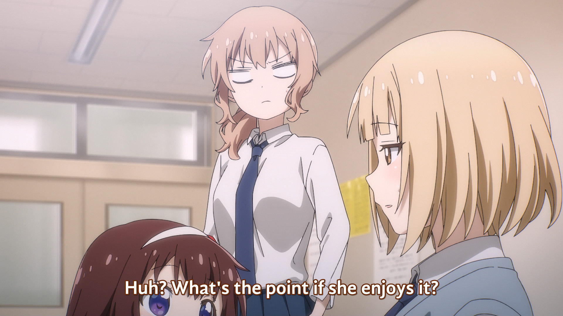 >>287158850>brat is nice enough to lend her a shirt>she complains because her freakishly large tits don't fit in the normal shirt>somehow makes it brat's faultIf Brat was any less dumb she wouldn't put up with this.
