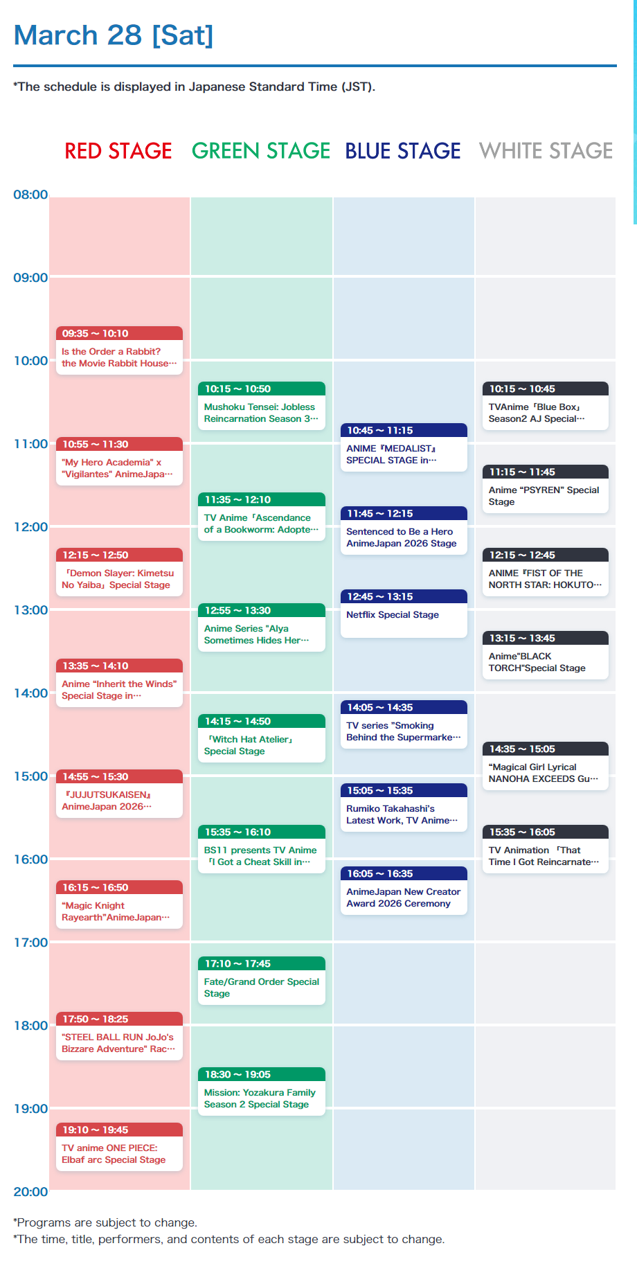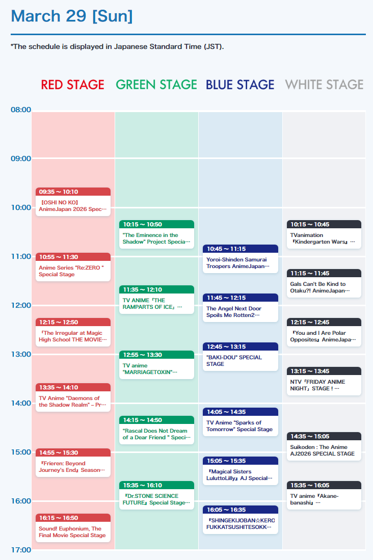 All other stages today are region locked on ABEMA so you will need a VPN to watchhttps://abema.tv/lp/animejapan-onair