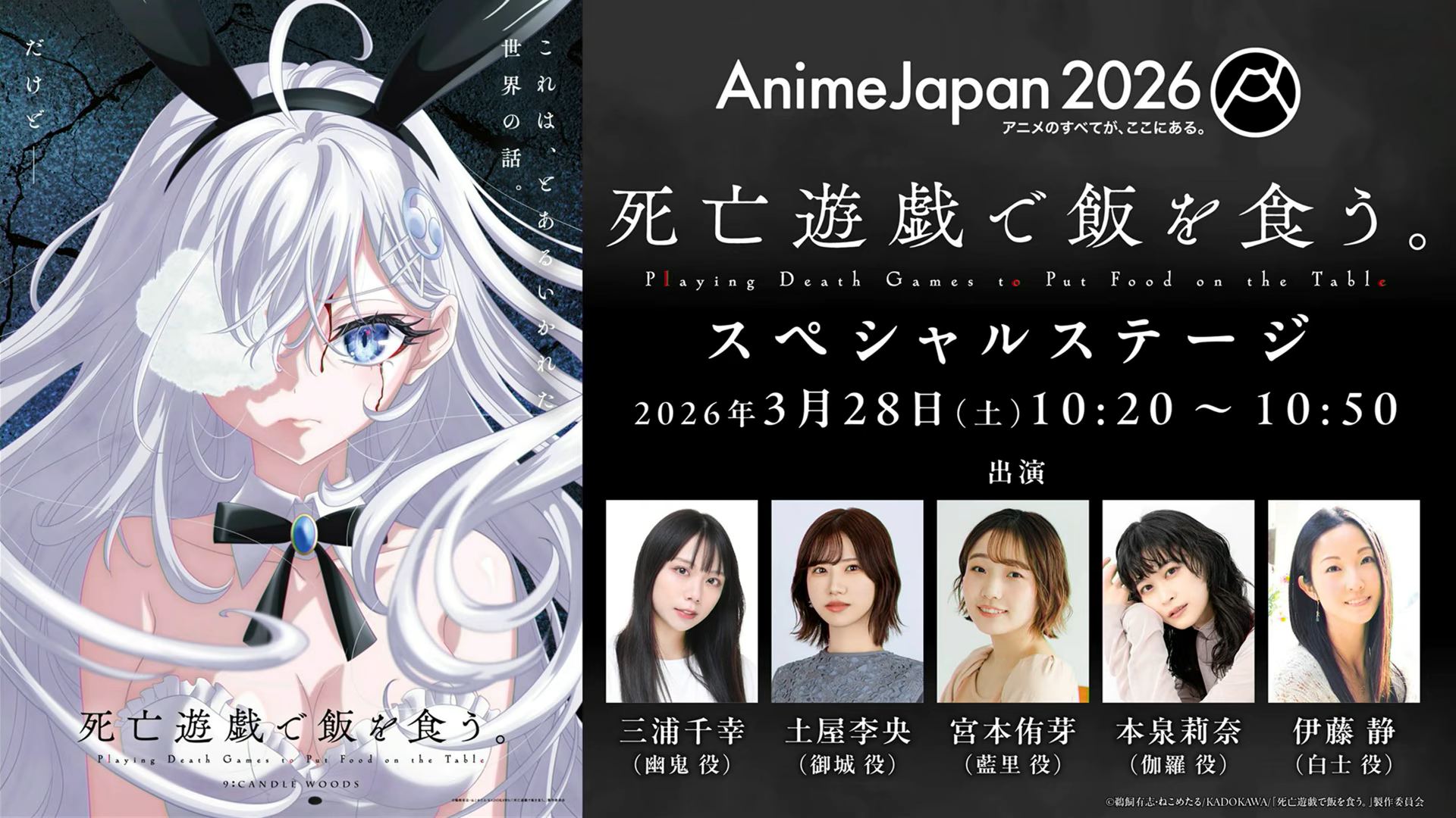 Kadokawa Day 1 stream>10:20 - 10:50 Shibou Yuugi de Meshi wo Kuu.>11:20 - 11:50 Replica datte, Koi wo Suru.>12:20 - 12:50 Tai-Ari deshita.: Ojousama wa Kakutou Game nante Shinai>13:20 - 13:50 Kimi ga Shinu made Koi wo Shitai>14:20 - 14:50 Odekake Kozame>15:20 - 15:50 Sayonara Lara>16:20 - 16:50 Youjo Senki IIhttps://www.youtube.com/watch?v=k9rghm3qcxo