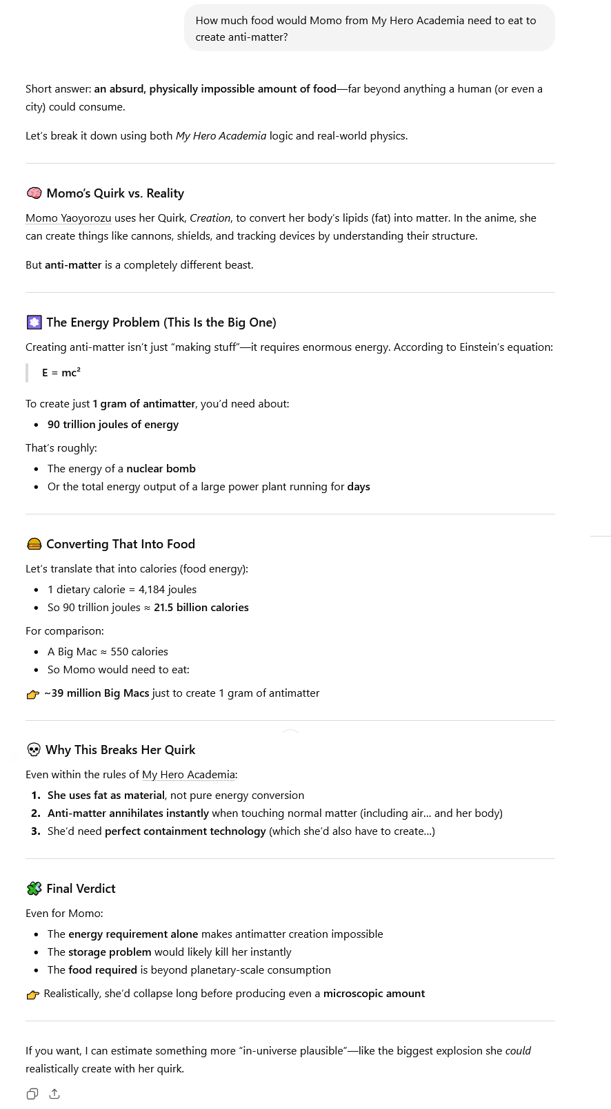 >>287046215>create anti-matterHow much food would she need to eat?