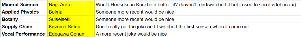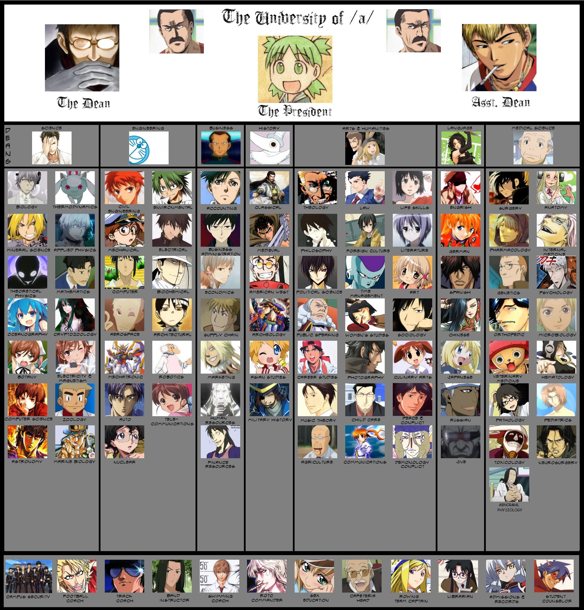 And yes, this is a modernization attempt. It's better if your suggested character is from an series from the last 15 years (this includes adaptations). But the end goal is to reflect the evolution of /a/ culture, so the rules aren't set in stone. And no, it won't be replacing the original chart.