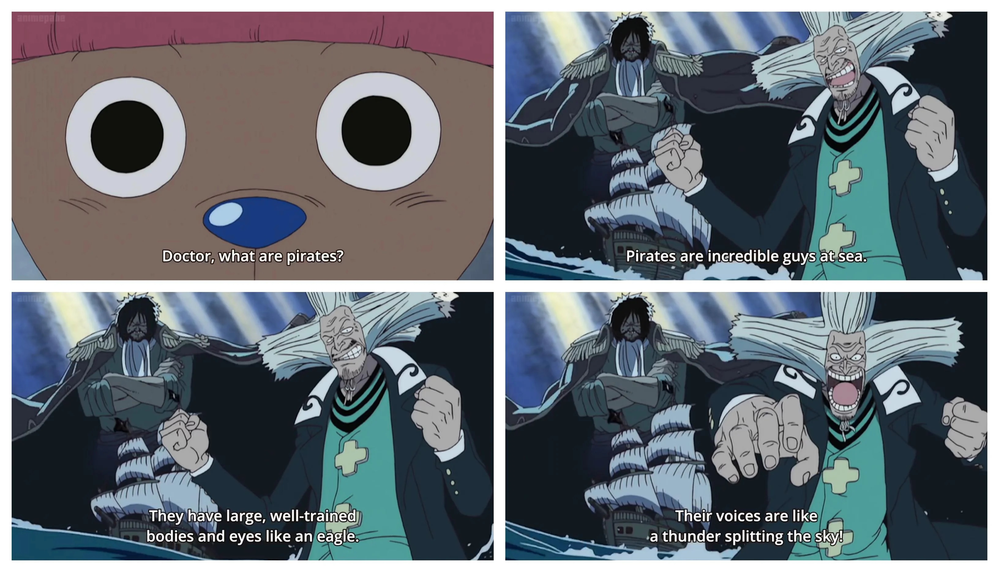 Interesting how Zoro and Chopper have this brotherly relationship whereas Chopper is constantly trying to murder Sanji.