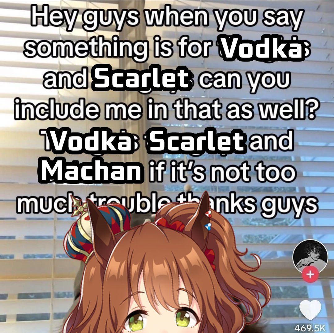 >>287058250>>287065887Daiwa Scarlet and Vodka deserve their own anime. They were not used that well in main anime Also this would mean more Tachyon and proper anime appearance of Gimlet in support role
