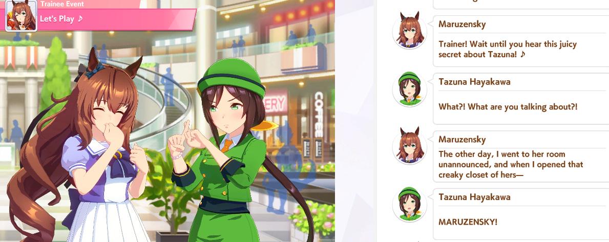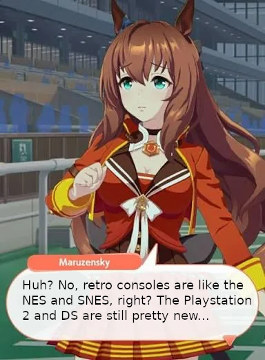 >>287116440I agree completely, but the story of an umamusume that’s hindered because she’s TOO fast has such potential, even if it means deviating from real-world inspirations to tell it. Because that much remains true whether she has contemporaries within the academy or not; NOBODY wanted to race against Maruzensky, better to just avoid the certain loss. That’s why characterising her as a fun loving boomer that just wants to inspire others with the very speed that inadvertently demotivates them is so tragically perfect. Conundrums like that make me think there’s potential for a great story even with such an overpowered uma. >Would be fun though to see Maruzen secretly going out for cold ones with the other old undefeated umasThat’s kind of canon already kek. Pretty sure Maruzensky knows Tazuna’s secret based off this interaction.