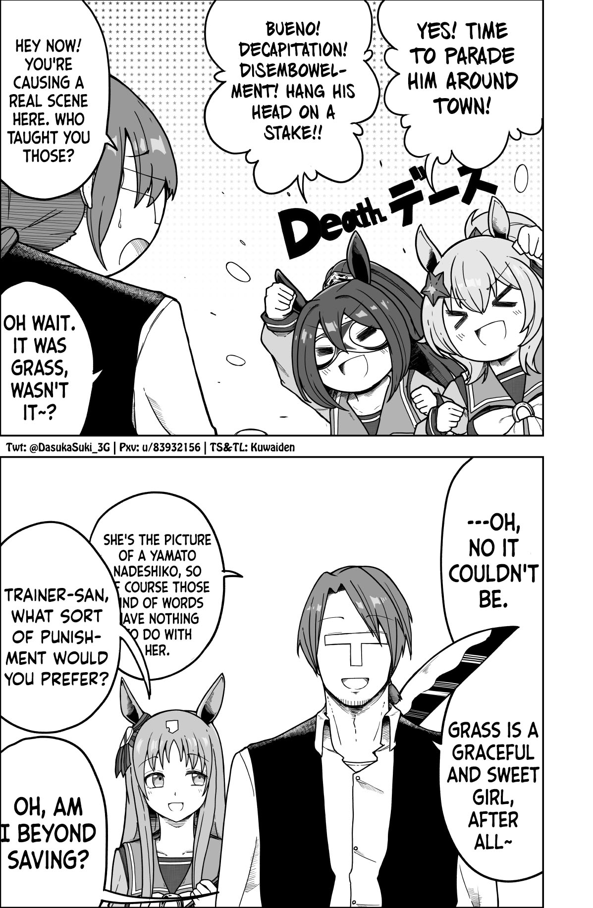 >>287067957A slice of life with cute umas does sound more fun than CG. Give me Dober and Digitan doujin shenanigans, Mejiro family events, and Maya misunderstanding what a date is. I don't need racing in that context.
