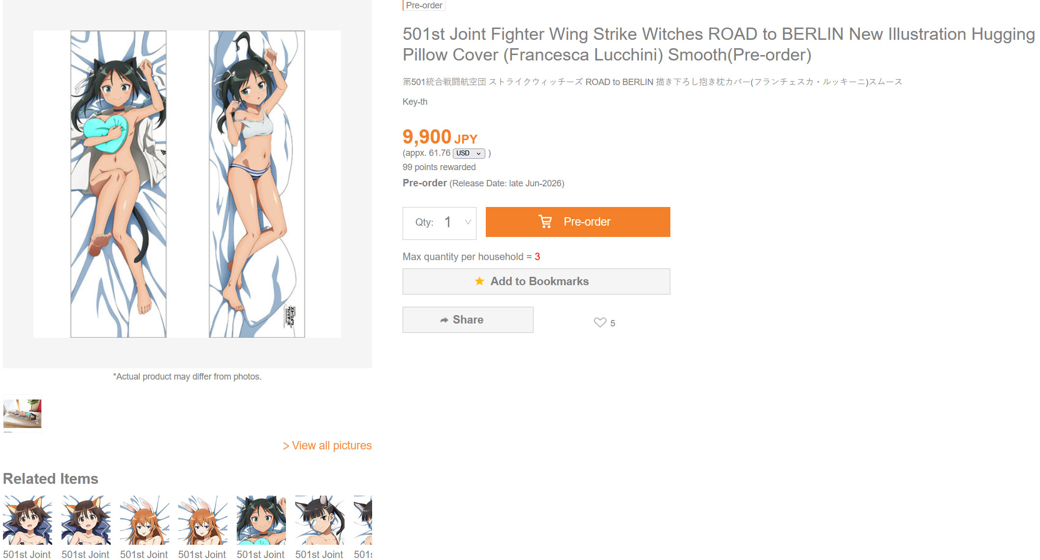 Official Strike Witches dakimakura covers, not on the front page